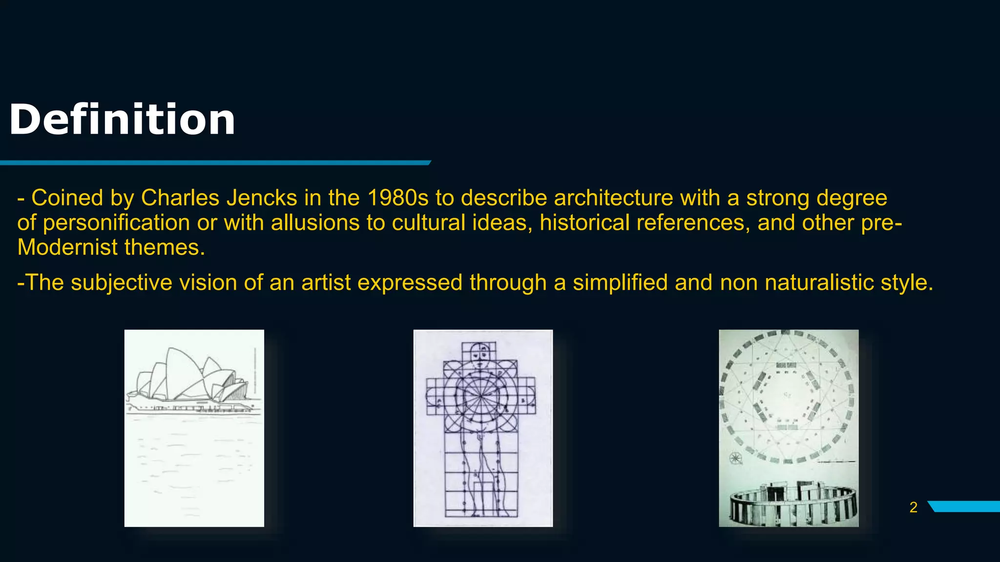 Symbolic architecture emerged in the late 19th century as architects sought to express personal visions and escape from reality through simplified styles infused with mysticism and cultural references. It uses symbols linked to history and society to convey particular meanings without a direct causal relationship. Examples include the Aceh Tsunami Museum, designed to commemorate tsunami victims through a corridor mimicking the disaster and a roof resembling waves, and the Notre Dame du Haut Chapel, creating a space of prayer through its curved shape embracing visitors while seeming to reach skyward.