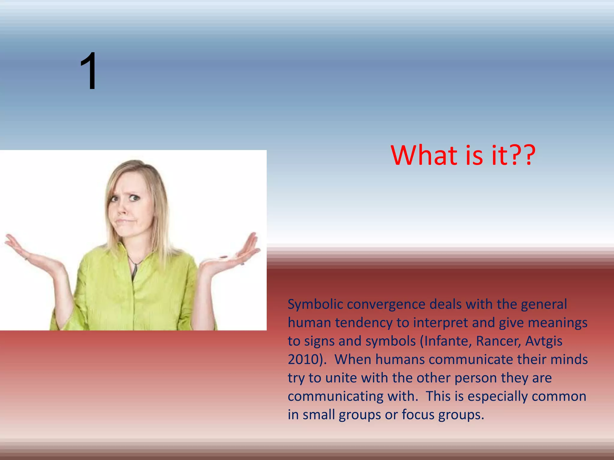 1. Symbolic convergence theory deals with how humans interpret signs and symbols and try to unite with others they are communicating with, especially in small groups.