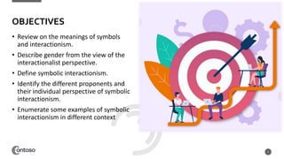 Symbolic interactionism is a sociological theory that focuses on the relationships among individuals within a society. Communication, the exchange of meaning through language and symbols, is believed to be how people make sense of their social worlds. There are two main generations of symbolic interactionism. The first sees actions as always having meaning, while the second sees social life as a performance of roles. Proponents of symbolic interactionism, such as George Herbert Mead, Charles Cooley, and Erving Goffman, studied how meanings and identities emerge through social interaction and the interpretive processes used by individuals.