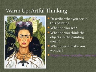 The High Museum of Art in Atlanta is hosting an exhibition titled "Frida & Diego: Passion, Politics and Painting" that features the works of Mexican artists Frida Kahlo and Diego Rivera. The exhibition provides biographical information on Frida Kahlo, noting she was a painter born in 1907 in Mexico who often depicted herself and personal experiences in her self-portraits after being disabled in a bus accident, and was married to artist Diego Rivera.