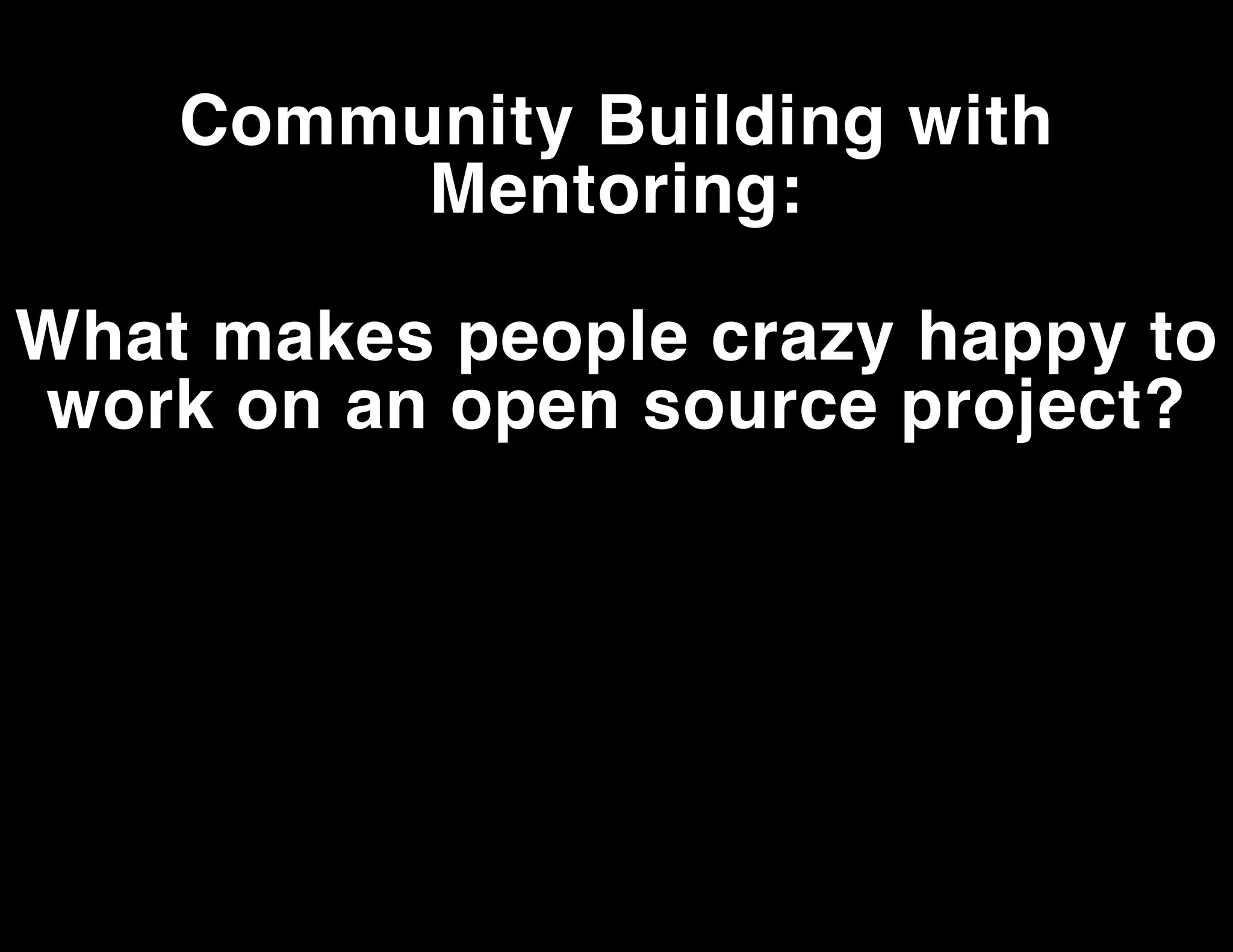 The document discusses ways to build community through mentoring in open source projects, emphasizing the importance of inclusion and support for both new and experienced contributors. It highlights the roles of mentors in answering questions, preparing sprints, and recognizing participants to encourage ongoing engagement. Resources and opportunities for contribution are also shared, including an upcoming hacking day event.