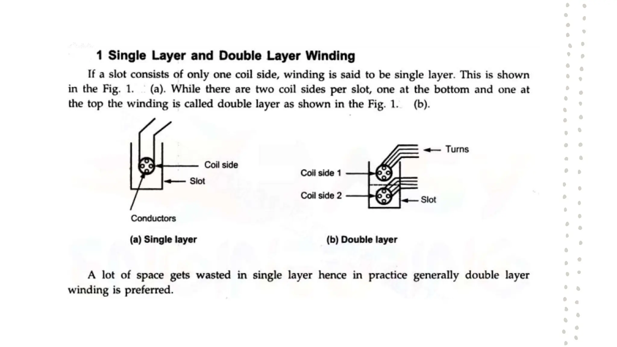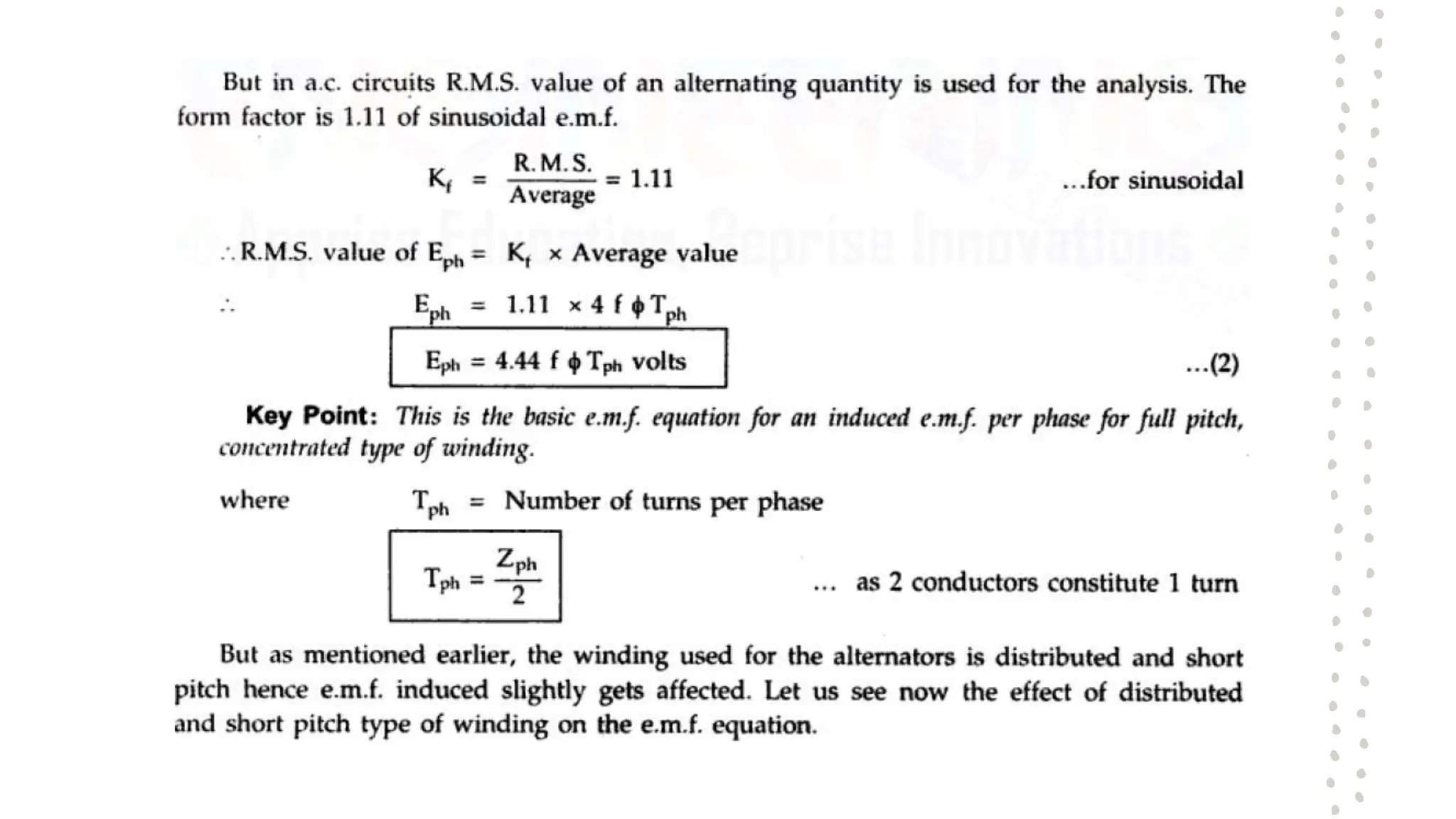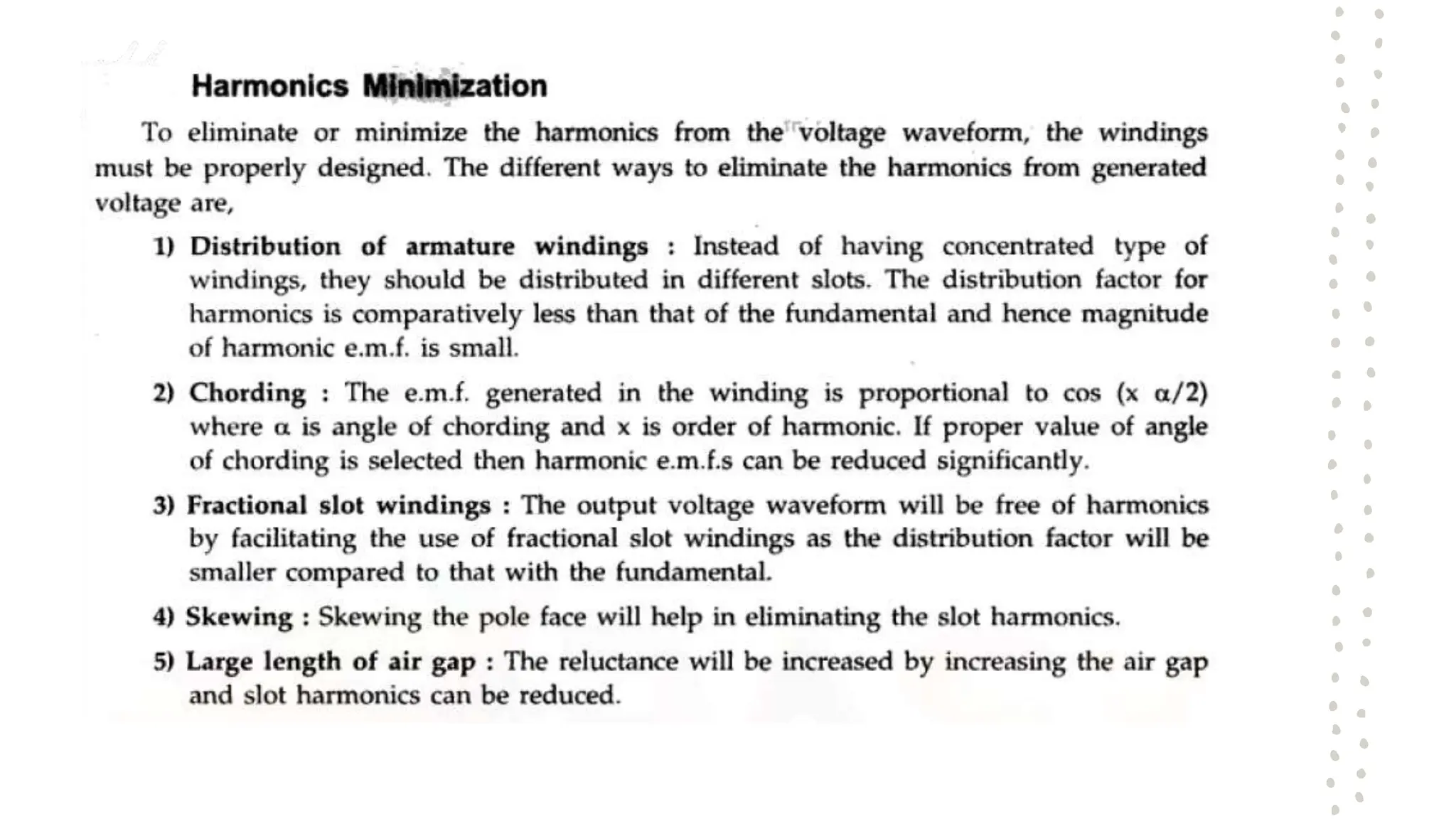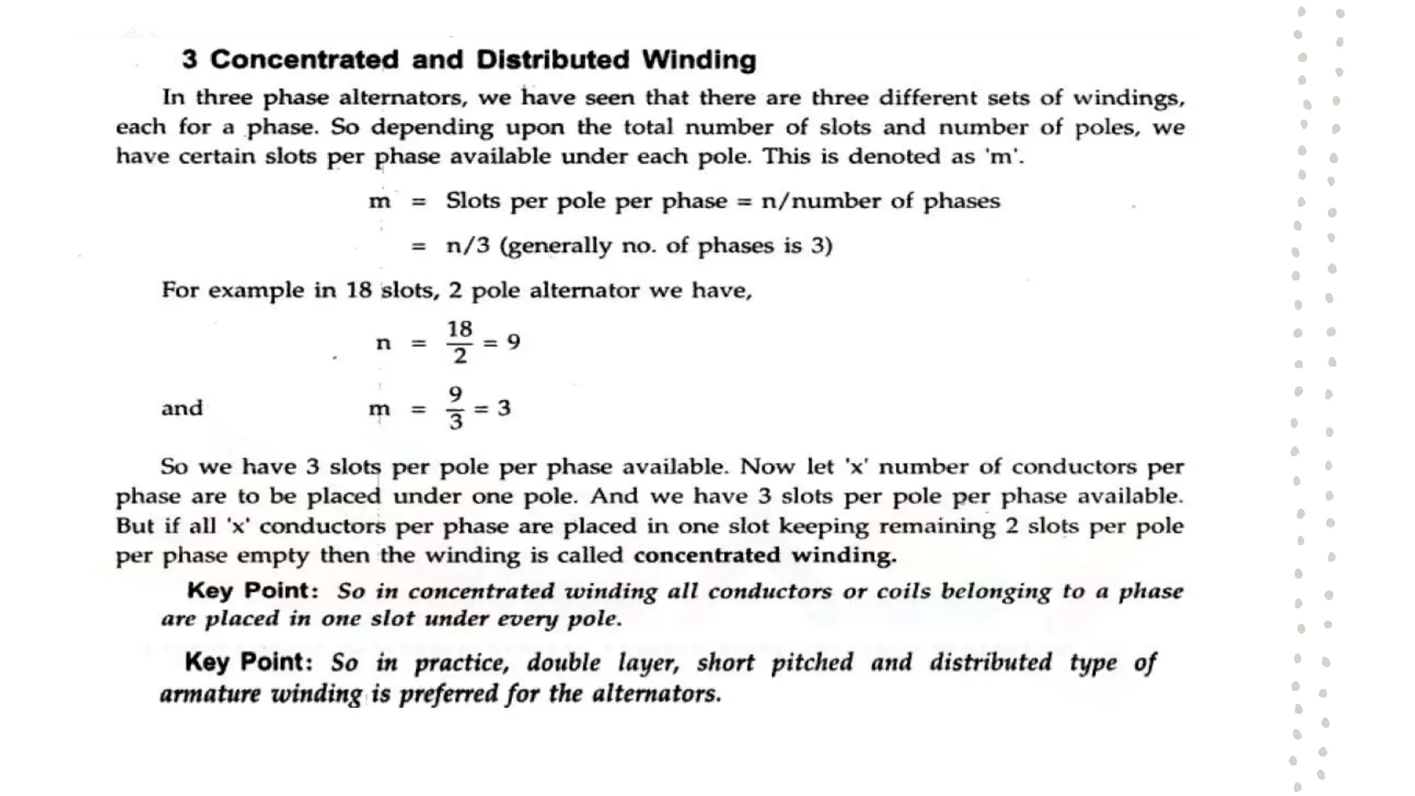 The document discusses the key differences between DC generators and alternators, emphasizing that a DC generator produces alternating e.m.f. in its armature conductors which is converted to DC via a commutator. Without the commutator, the machine becomes an alternator, providing AC e.m.f. directly. It also touches on the types of coils used in generators, specifically full and short-pitched coils.
