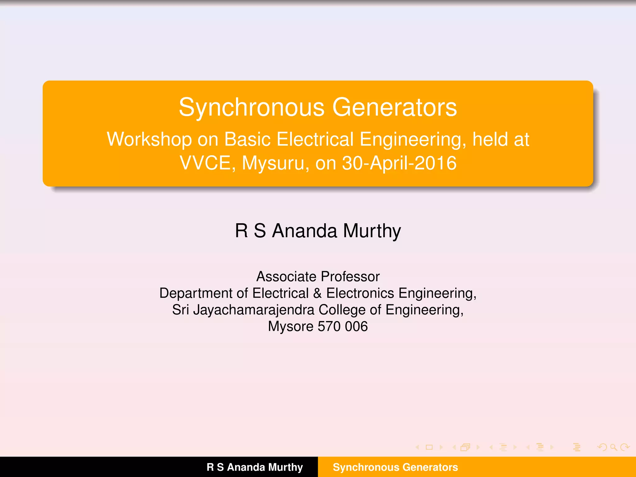 2) Different types of generator constructions including salient pole and cylindrical rotor types.