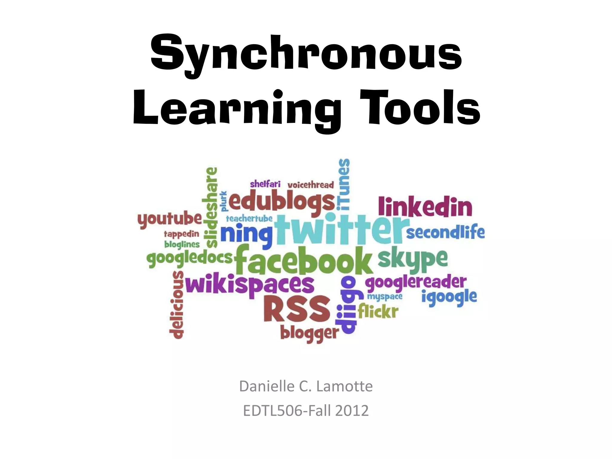 Synchronous learning tools enable real-time communication and collaboration using audio conferencing, video conferencing, web conferencing, chat, instant messaging, white boarding, and application sharing. The author has used many synchronous tools in their classroom and graduate courses, including Voki for creating speaking avatars, Second Life for 3D virtual worlds, Blackboard Collaborate for virtual classrooms, Google tools like Docs and Sites, Skype for video calling, Adobe Connect for web conferencing, and Moodle as their online classroom platform. While there are disadvantages, the author believes the advantages of synchronous tools outweigh them.
