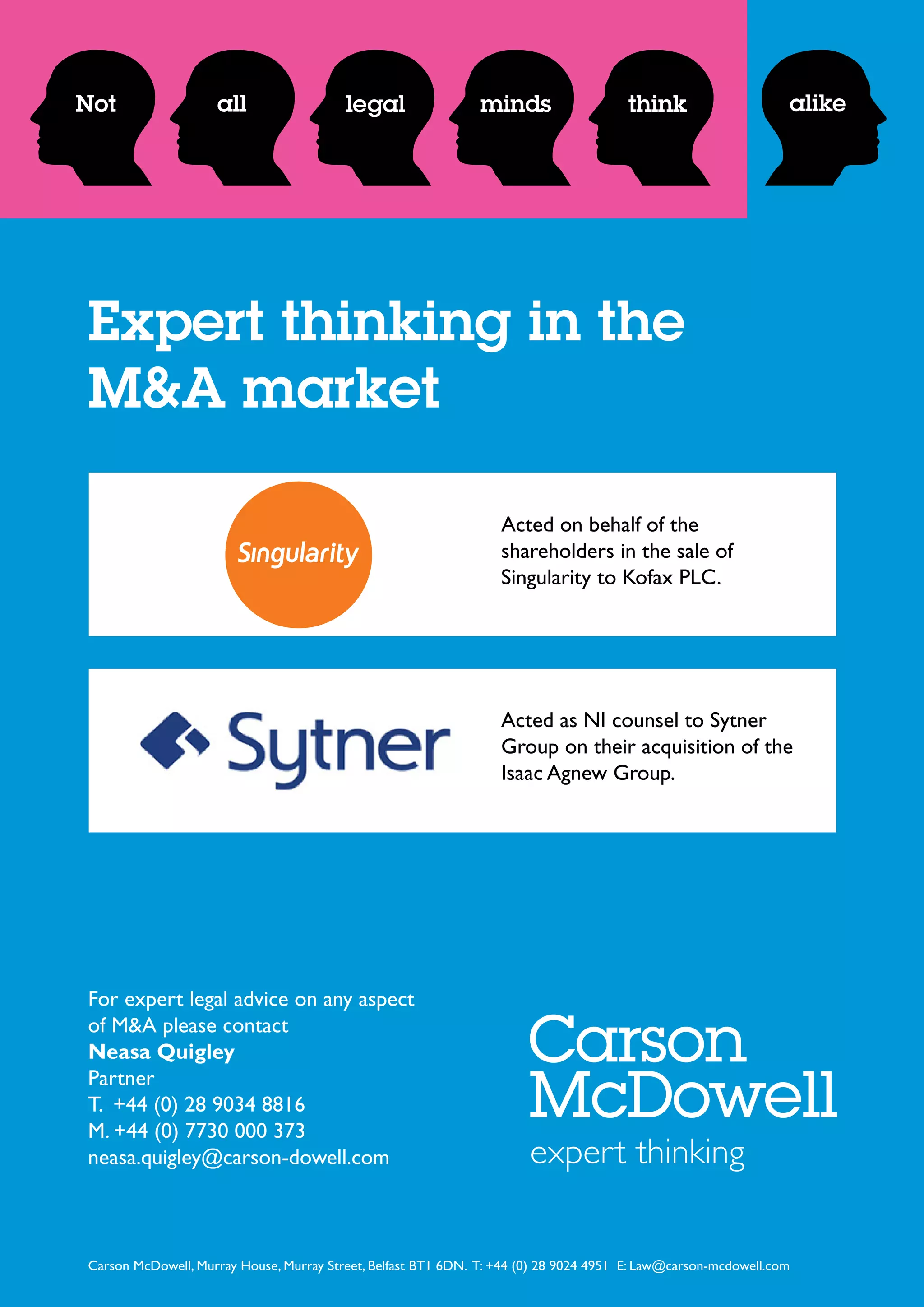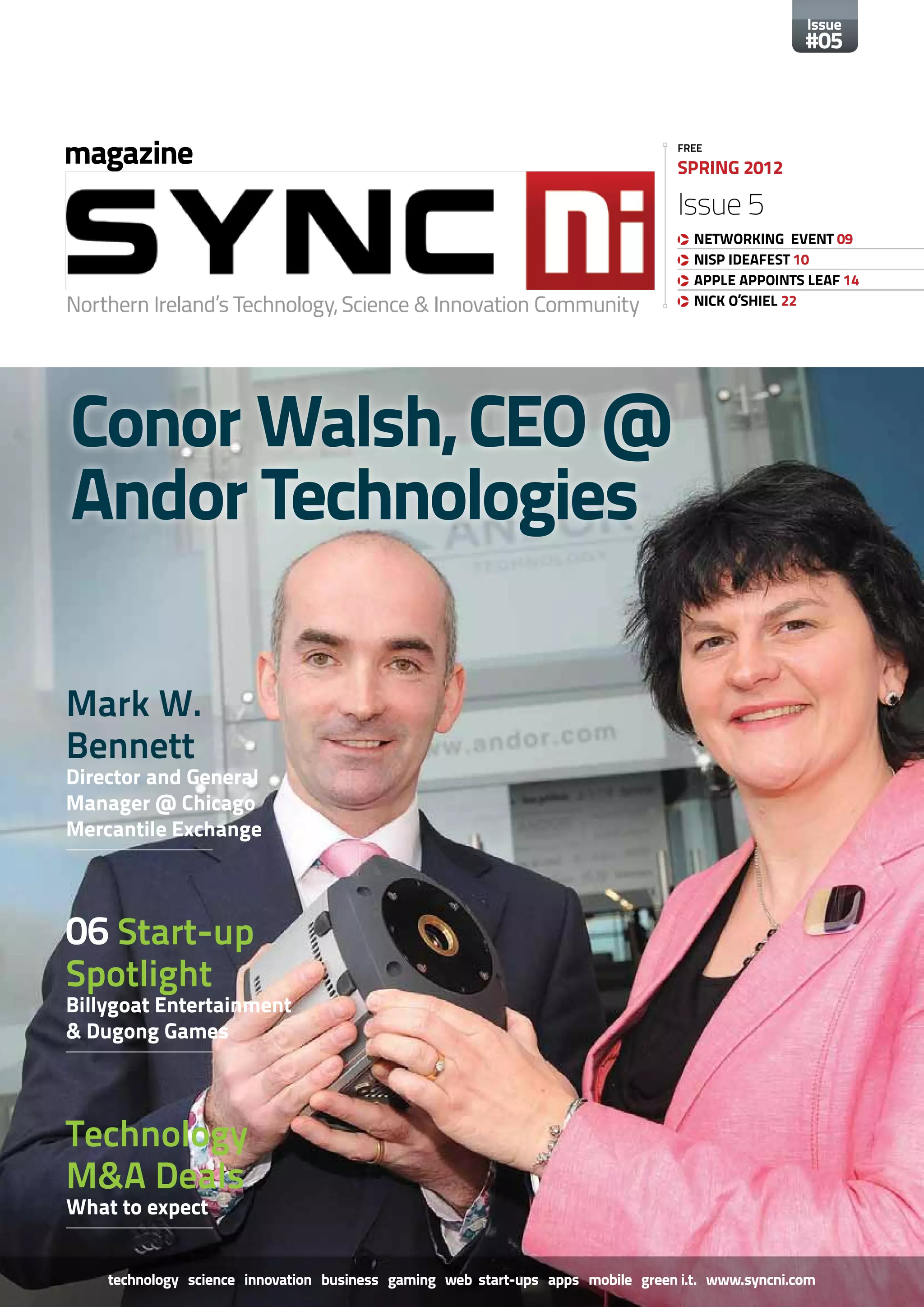 This issue of the SyncNI magazine focuses on technology, science, and innovation in Northern Ireland. It features an interview with the CEO of Andor Technologies and highlights two local startups, Billygoat Entertainment and Dugong Games. It also previews expected M&A deals in the technology sector and provides an expert on receiving legal advice for M&A activities. The foreword from the CEO of Invest NI discusses supporting businesses in Northern Ireland through challenging economic times by helping them innovate, develop skills, export, and create jobs.