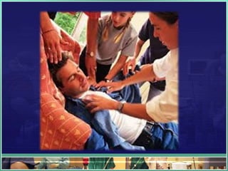 Vasovagal syncope is fainting caused by a drop in heart rate and blood pressure. It can be triggered by emotional stress, pain, hunger, heat, or prolonged standing. During an episode, blood pools in the extremities instead of returning to the heart, reducing blood flow to the brain and causing loss of consciousness. Prevention focuses on avoiding triggers. When symptoms first appear, the person should lie down and raise their legs to improve blood flow. If they faint, placing them in the recovery position provides proper airway support and circulation until they regain consciousness.