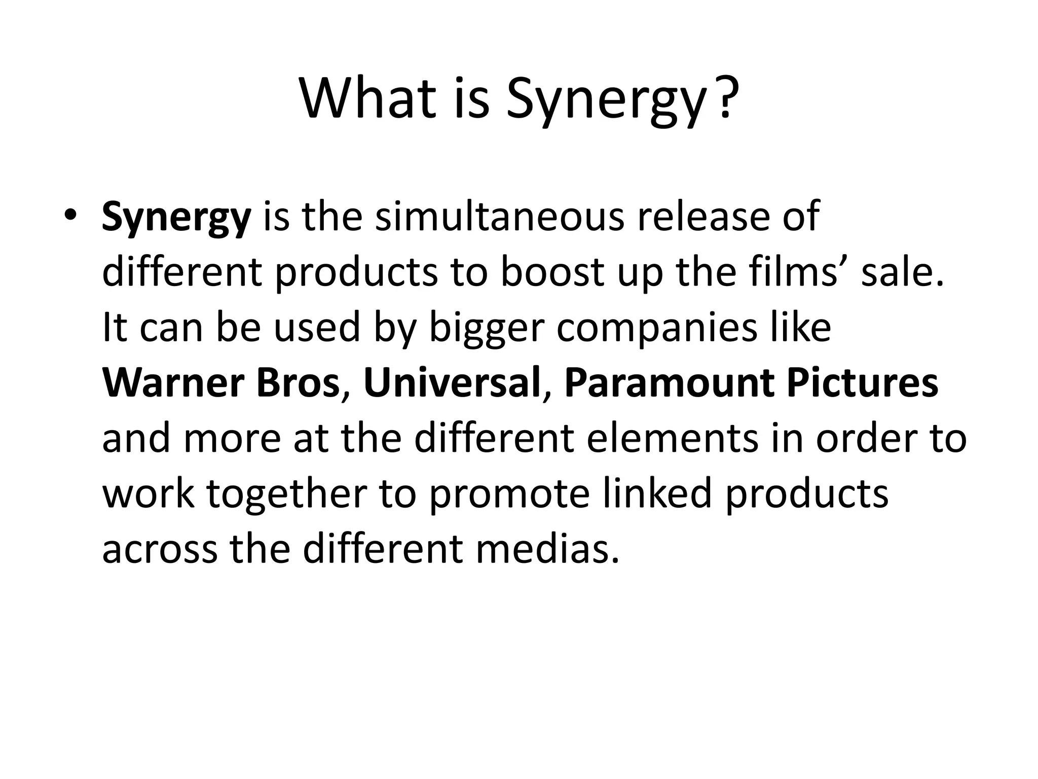 The document discusses synergy and convergence in film promotion, illustrating these concepts with case studies of 'Teenage Mutant Ninja Turtles (2014)' and 'Mrs. Brown's Boys D'Movie'. Synergy involves various marketing strategies like soundtrack release, merchandise tie-ins, and promotional events to enhance a film's visibility, while convergence refers to the combination of different media platforms for distribution and audience engagement. The analysis highlights how both films successfully leveraged these strategies to boost audience interest and sales.