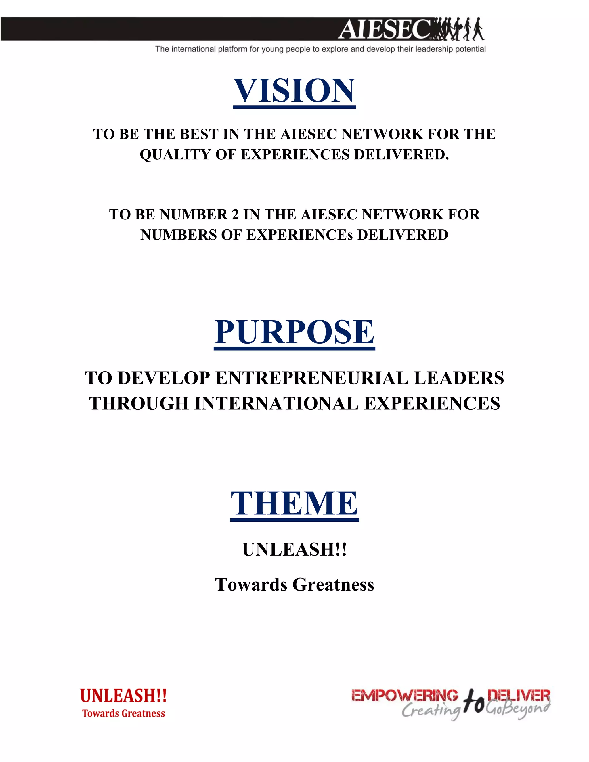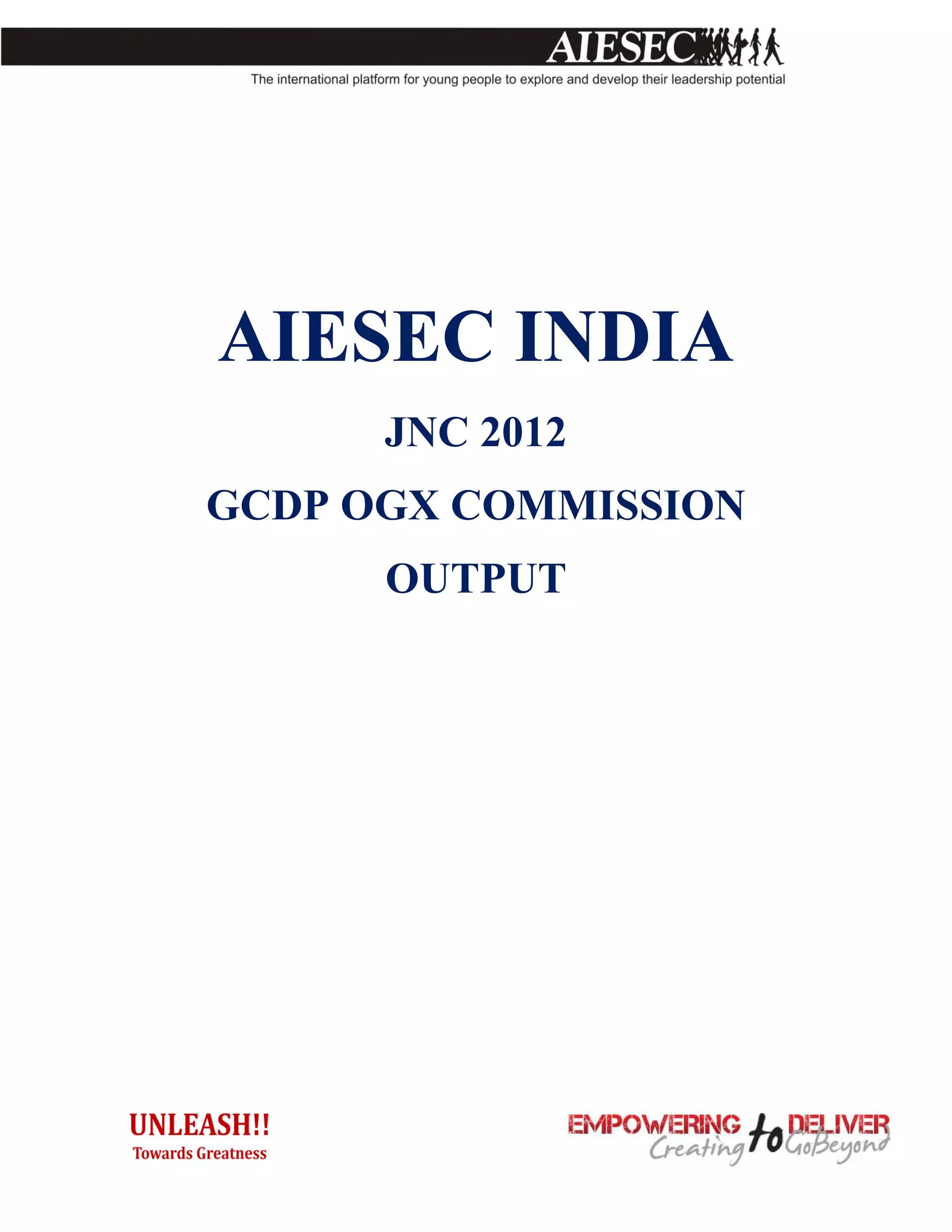 This document outlines the organizational structure and initiatives for AIESEC India's Global Cultural Development Programme (GCDP) Outgoing Exchange (OGX) department. The vision is to be the best in the AIESEC network for quality of experiences delivered and number 2 for number of experiences delivered. The purpose is to develop entrepreneurial leaders through international experiences. It proposes organizational structures for local committees involving teams for university relations, delivery, exchange support, international relations, and regions. It also details initiatives for raising, product packaging, partnerships, marketing, training, and an information hub.