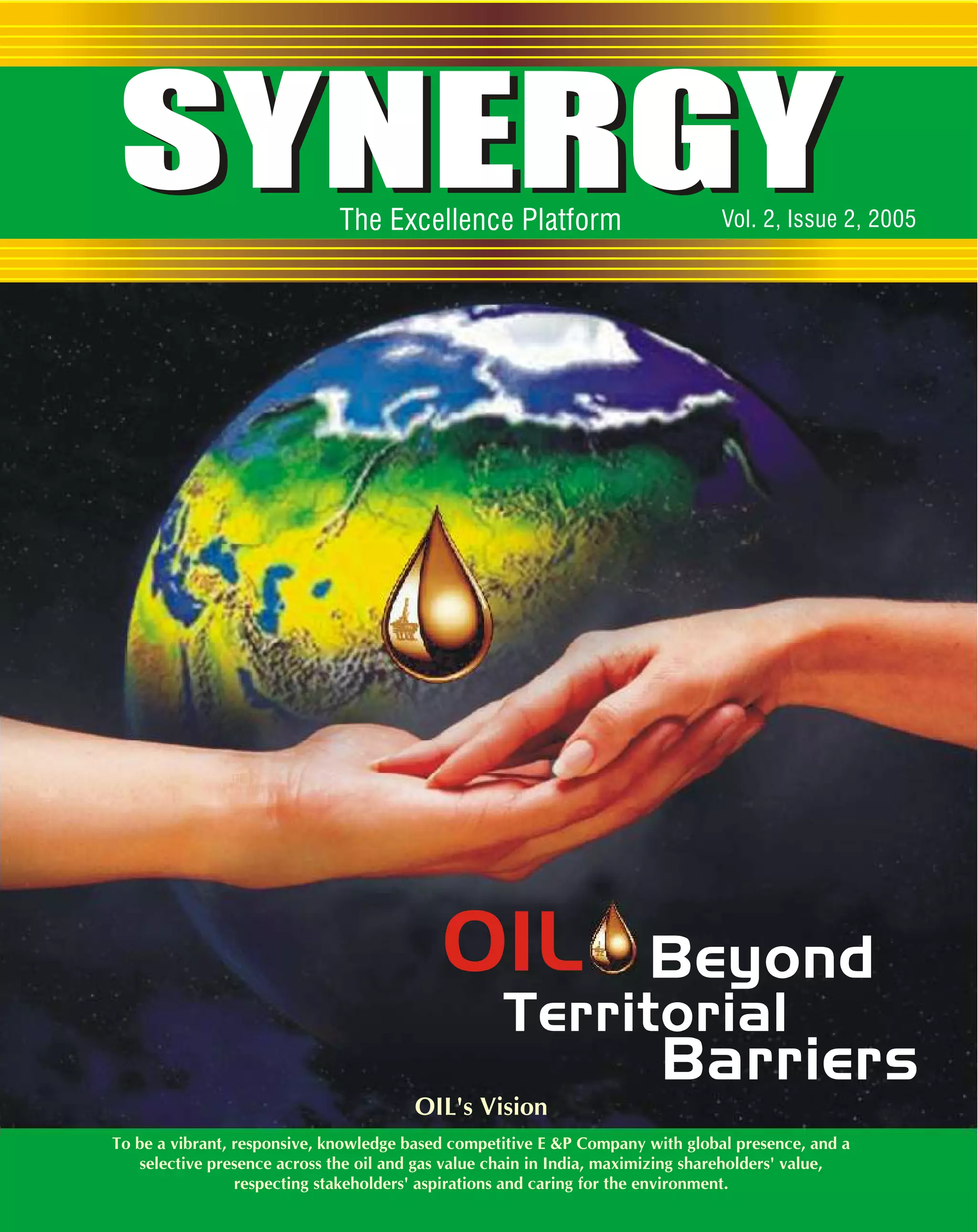 OIL's vision is to be a knowledge-based, competitive exploration and production company with global presence and selective presence across the oil and gas value chain in India, maximizing shareholder value while respecting stakeholders and the environment. The document discusses OIL's potential for mergers and acquisitions to expand beyond territorial boundaries into the upstream, downstream, natural gas, and chemicals value chains. It analyzes the different risk and return profiles of businesses in each segment of the oil and gas industry value chain.