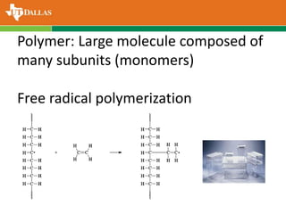 2) The terpolymer has a glass transition temperature of 114°C and degrades at 310°C. It leaves a char yield of 44% and is melt processable.