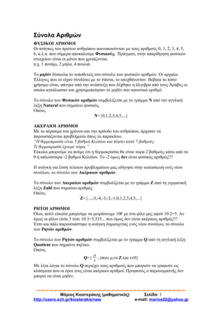 Σύνολα Αριθμών