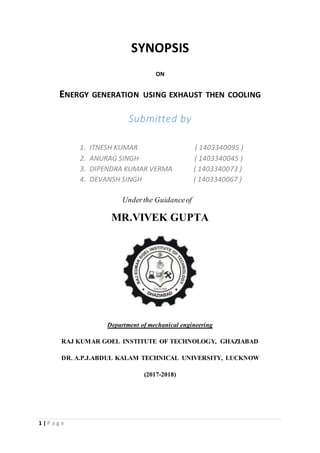 The document outlines a project that focuses on recovering waste heat from internal combustion engines to generate electrical power using a thermoelectric generator (TEG). It discusses the methods, objectives, and scope of improving energy efficiency in automobiles by converting exhaust heat into usable energy, thus promoting sustainability in the automotive industry. The successful implementation of the proposed system demonstrates its potential to enhance power generation capacity while minimizing environmental impact.