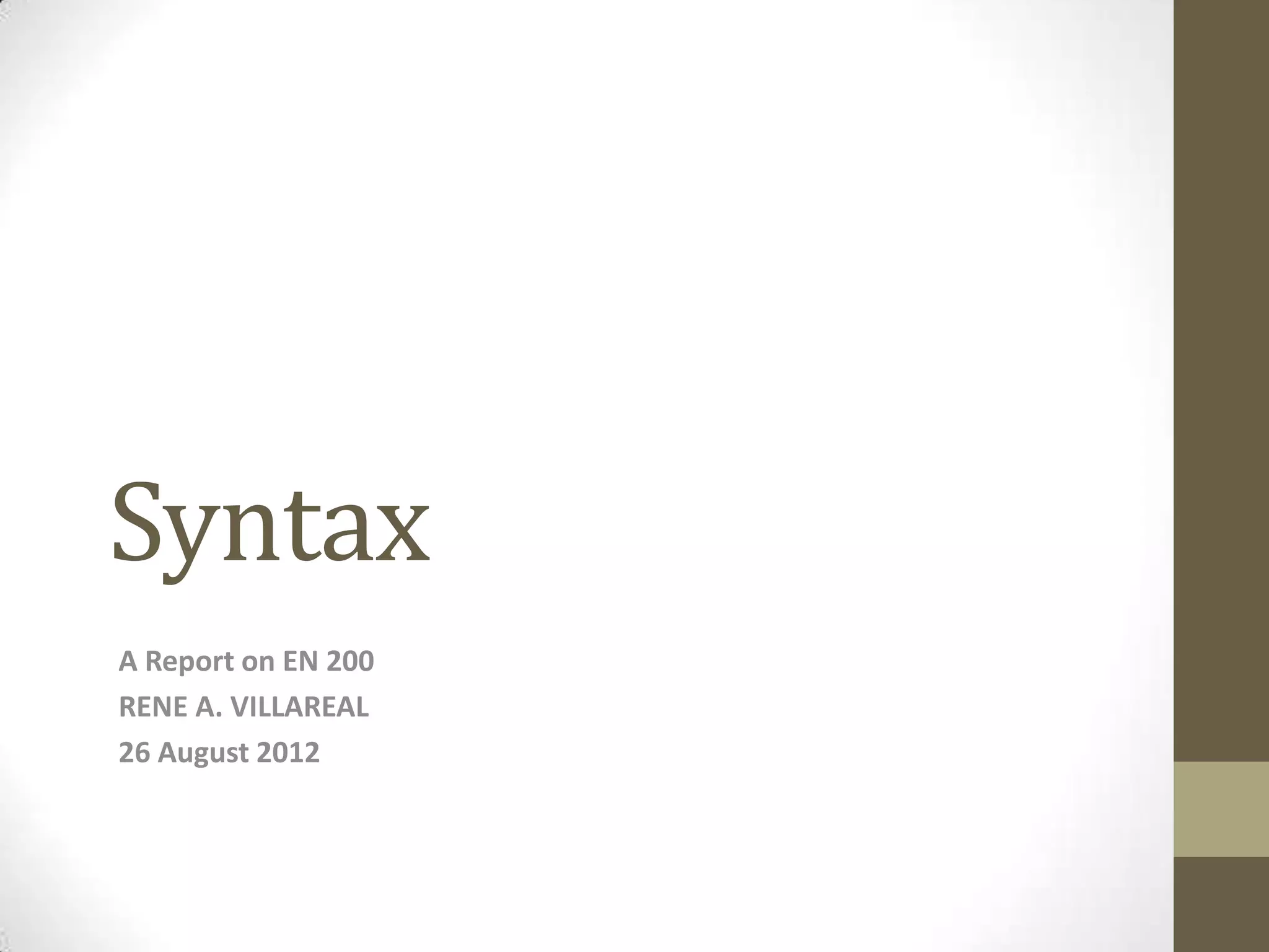 The document discusses the key concepts of syntax including: