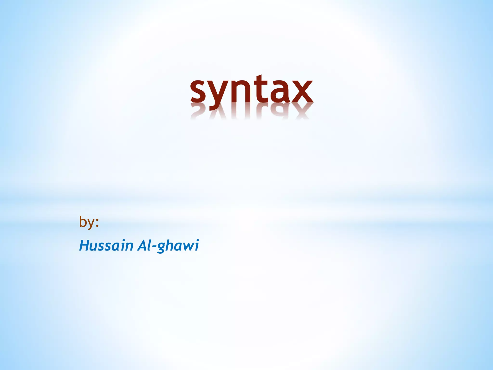 This document defines and categorizes the different parts of speech in syntax. It discusses lexical categories such as nouns, verbs, adjectives, adverbs, determiners, prepositions, pronouns, conjunctions and auxiliary verbs. It also examines phrasal categories including noun phrases, verb phrases, adjective phrases, adverbial phrases and prepositional phrases. Examples are provided to illustrate different parts of speech and how they are arranged to form sentences.
