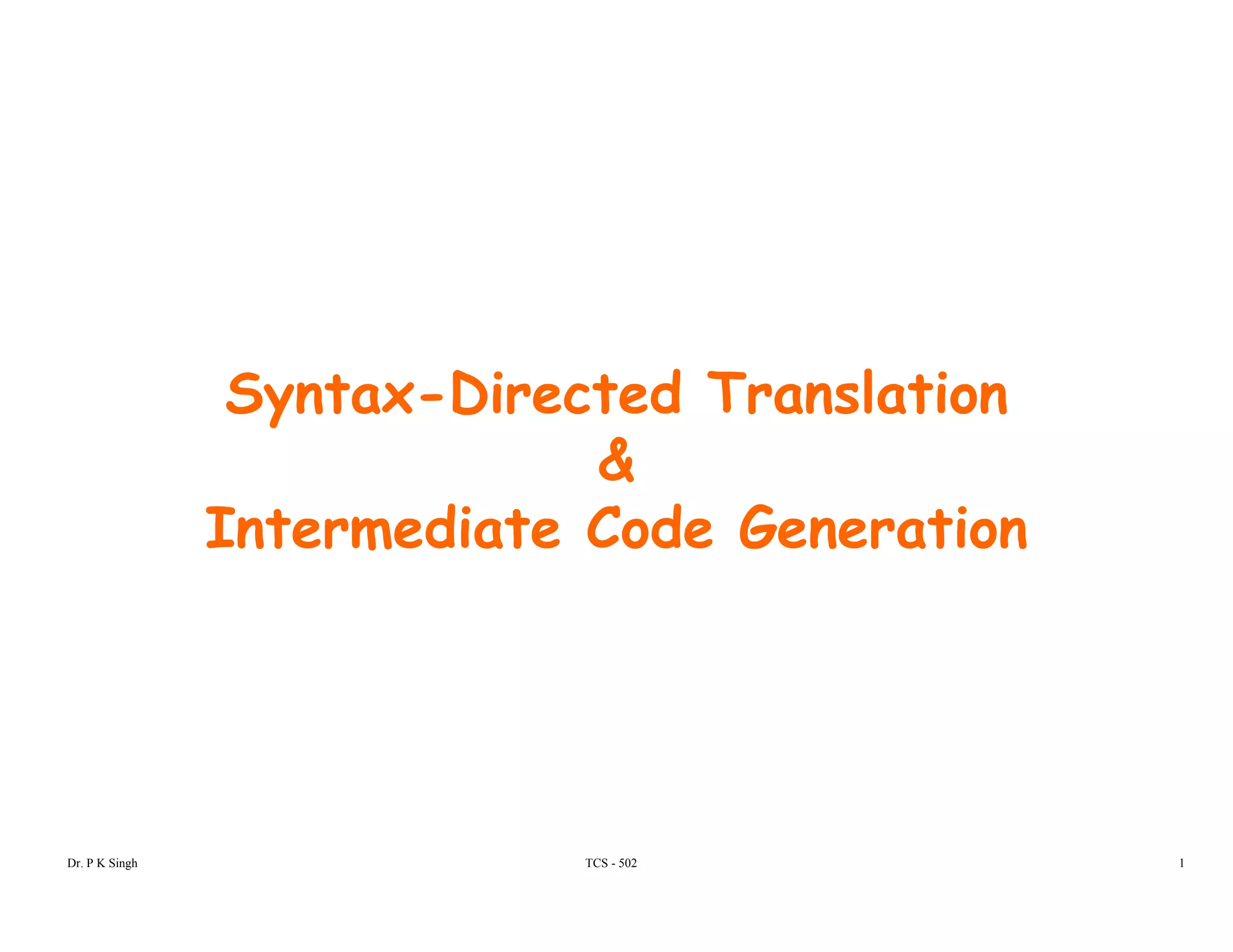 The document discusses syntax-directed translation and intermediate code generation in compilers. It covers syntax-directed definitions and translation schemes for associating semantic rules with context-free grammar productions. Attribute grammars are defined where semantic rules only evaluate attributes without side effects. Syntax-directed translation builds an abstract syntax tree where each node represents a language construct. Intermediate representations like postfix notation, three-address code, and quadruples are discussed for implementing syntax trees and facilitating code optimization during compilation.
