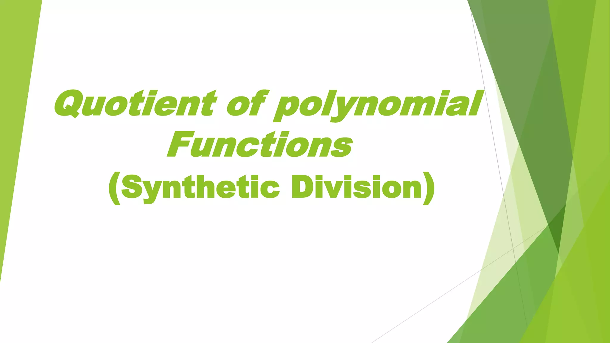 This document discusses using synthetic division to find the quotient and remainder when dividing polynomials. It provides the step-by-step process for synthetic division, including examples of dividing polynomials where the divisor is of the form x + c and ax + c. The key steps are writing the coefficients of the dividend as the first row, taking the negative of the constant term of the divisor as the multiplier, bringing down terms and multiplying and adding sequentially until the last term. The numbers in the third row give the quotient polynomial. The document also discusses using factoring and setting each factor equal to 0 to find the zeros of a polynomial function.