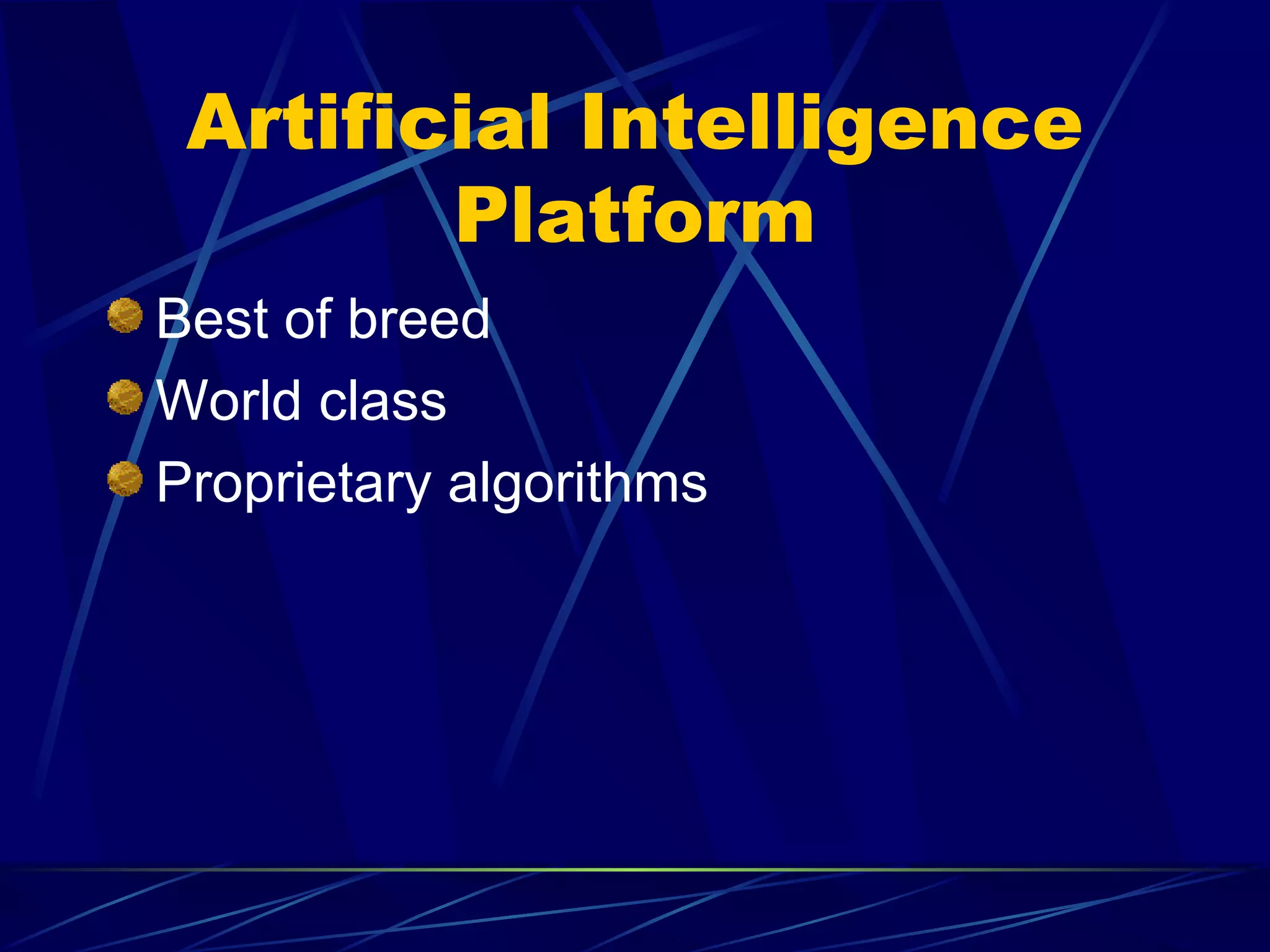The document outlines a synthetic intelligence platform aimed at replacing human roles in various industries, promising significant improvements in cost, speed, and accuracy. Initial applications focus on the legal, recruiting, and venture capital sectors, with case studies demonstrating substantial efficiency gains. It also discusses revenue projections and funding needs for the startup, which is led by experienced executives in the field.