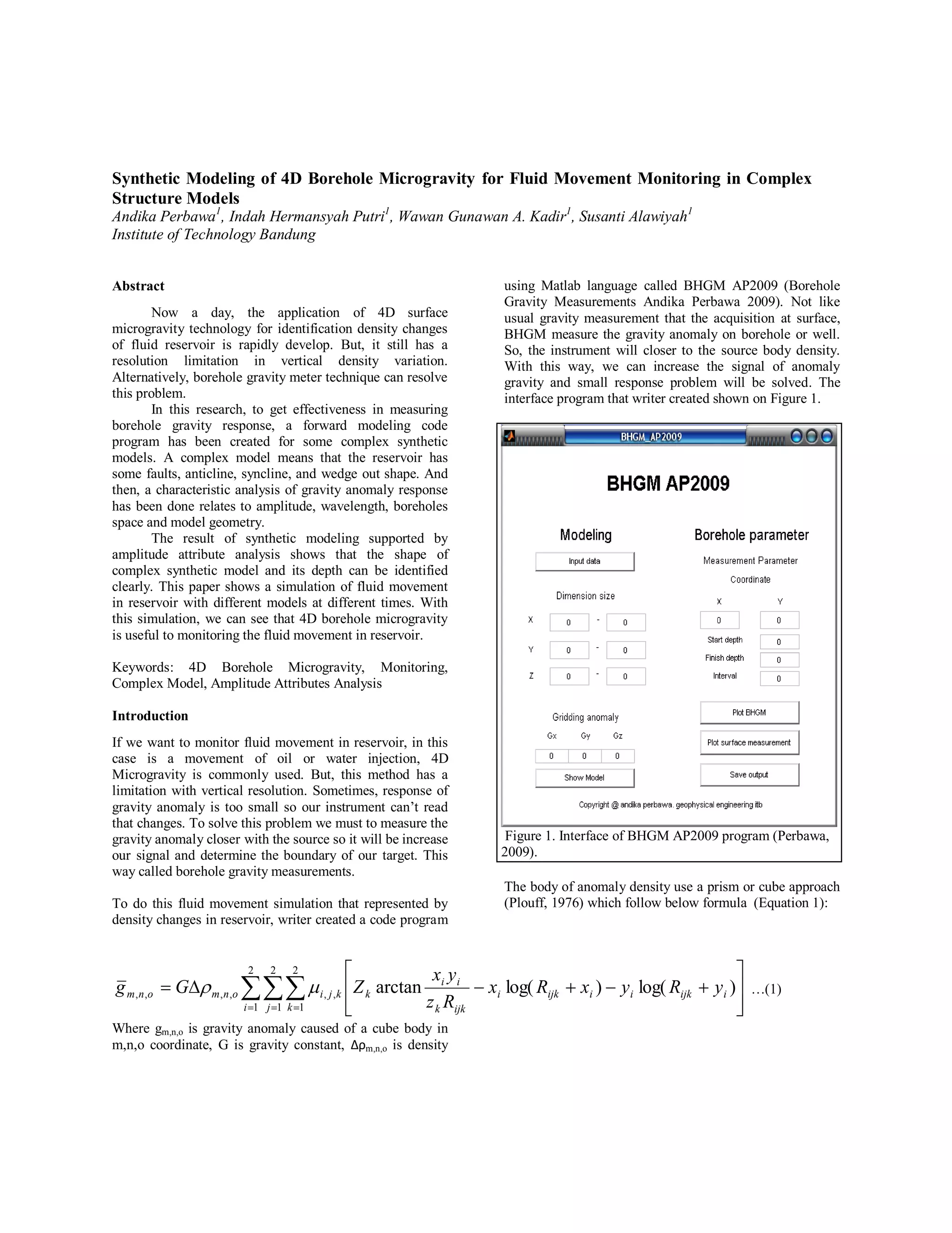 This document discusses the development of a forward modeling program to improve borehole microgravity measurements for monitoring fluid movement in complex reservoir structures. The study demonstrates how borehole gravity measurements can enhance the detection of density changes associated with oil and water injection compared to surface gravity measurements. Results suggest that this method effectively identifies fluid movement and provides insights into geological features like faults and density anomalies.