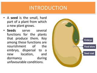 Synthetic seeds are encapsulated somatic embryos or shoot buds that can be used for planting like traditional seeds. They allow for clonal propagation of plants that are difficult to reproduce through traditional seeds, including some fruit crops. The production of synthetic seeds involves inducing somatic embryogenesis in callus cultures, maturing the embryos, and encapsulating them in a protective gel before planting. This allows genetic material to be stored and dispersed while avoiding issues with seed-borne diseases, low seed viability, and difficulties reproducing species that lack traditional seeds.