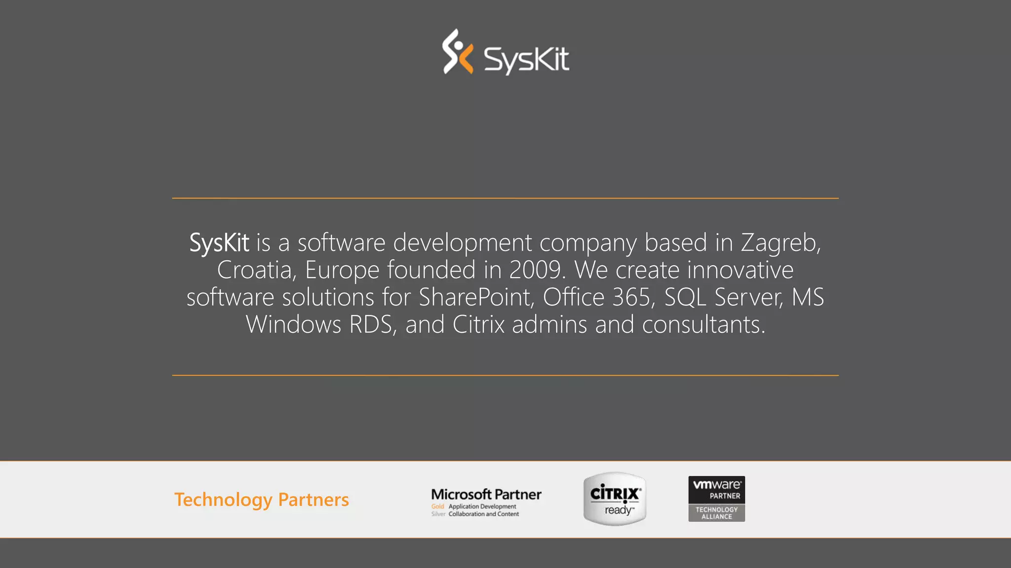 Syskit is a Croatia-based software company founded in 2009, specializing in innovative solutions for SharePoint and related technologies. Their product, Syskit Insights, allows for centralized monitoring and troubleshooting of SharePoint performance, providing features like log collection, performance monitoring, and intelligent alerts. The tool enables users to receive real-time notifications and reports about server performance and potential issues, enhancing overall management efficiency.