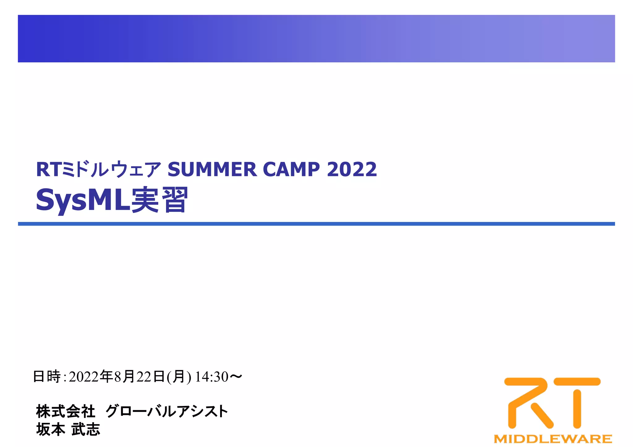 2022 SysML実習 日時:2022年8月22日(月) 14:30~ 株式会社 グローバルアシスト 坂本 武志