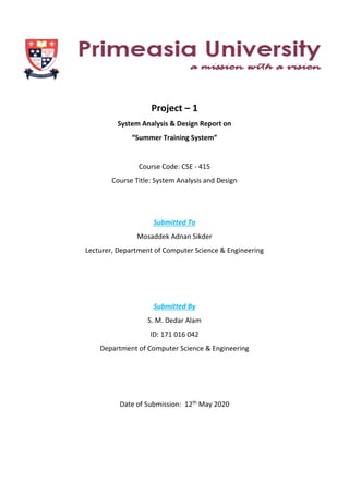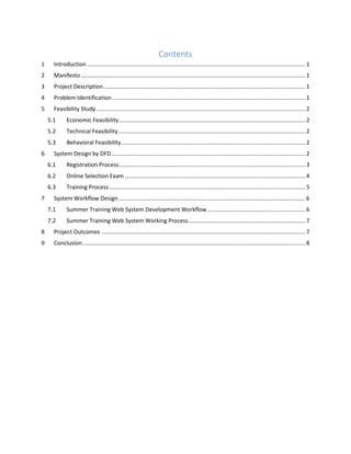 1. The document describes a proposed web-based system to manage a university's summer training program for students.