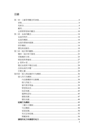 本书探讨管理理念的发展,强调工厂管理和系统思维的必要性。主要内容包括泰勒的科学管理、马斯洛的需求层次理论以及戴明的质量管理理念,旨在通过优化人力资源和工作效率实现企业的可持续发展。书中强调了管理不仅是科学,更是艺术,需要关注员工的心理和情感需求。
