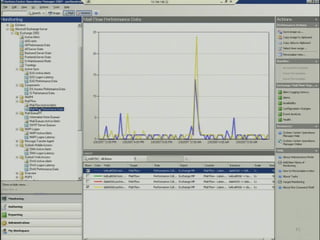 Exchange Server Yönetim Paketi Kullanılabilirliğin İzlenmesi Arka uçta MAPI Sentetik logon testleri Ön uçta sentetik logon testleri (OWA, OMA, EAS) E-posta akışının izlenmesi Veritabanı statüsü ve büyüklüğü Exchange Servi sleri 1700’ün üzerinde ilgili Exchange olayının izlenmesi Konfigürasyonun İzlenmesi Exchange “Best Practice Analyzer” İzlemesi Konfigürasyon değişikliklerininin izlenmesi Performansın İzlenmesi Exchange performans ölçümleri Akıllı Treshold değerleri Performans görüntüleri Raporlar Her öğe için kullanılabilirlik raporu Entegre performans raporları Konfigürasyon değişiklikleri raporları Görüntüler Topoloji Görüntüsü Temel izleme görüntüsü Görevler Sorun tanılama görevleri