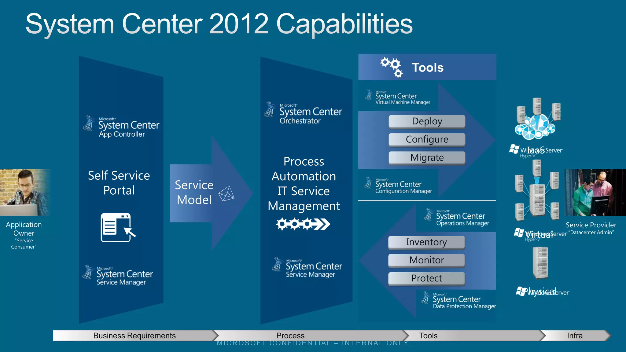 Windows Server 2012 and System Center 2012 SP1 provide capabilities for building productive, predictable, and secure private and public clouds. Key features include expanded scale and management capabilities for Hyper-V and VMware virtualization, new self-service user roles, and integration with Windows Azure for hybrid cloud scenarios. The technologies aim to enable IT organizations to deliver internal and external cloud services in a secure, automated, and cost effective manner.