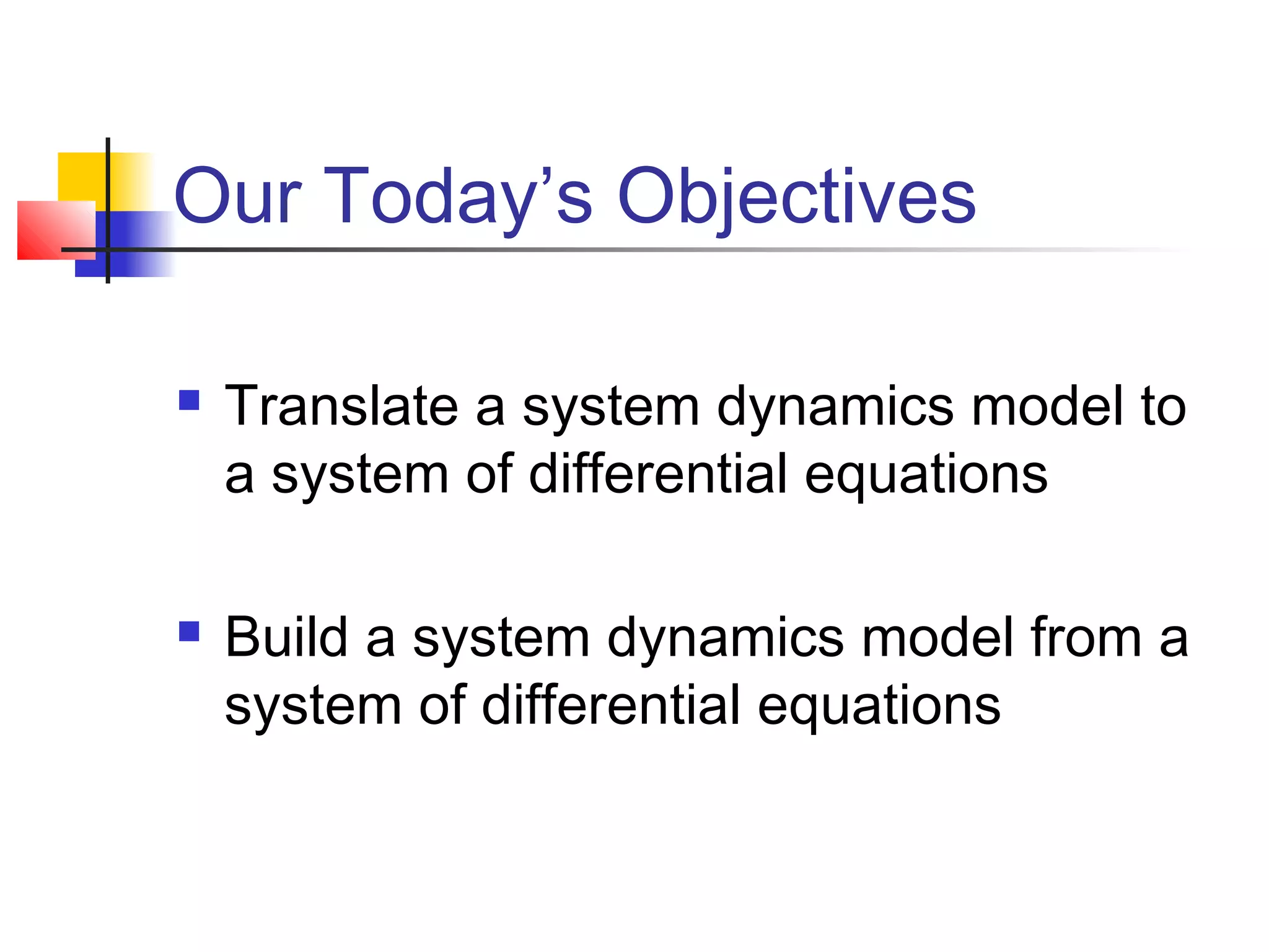 The document discusses how to mathematically represent system dynamics models using differential equations. It explains that system dynamics describe systems using state variables (stocks) and their rates of change (flows), which can be expressed as differential equations. These equations can be linear or nonlinear. The document provides several examples of system dynamics models translated into systems of differential equations. It also discusses how to interpret graphical functions and their derivatives to determine behaviors.