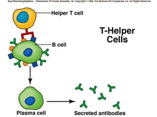 2) It also summarizes the three lines of immune defense - non-specific, inflammatory response, and specific response through B and T lymphocytes and memory cells.