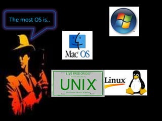 - Windows is the most widely used desktop OS, with over 90% market share. It has gone through several versions from Windows XP to Windows 8.