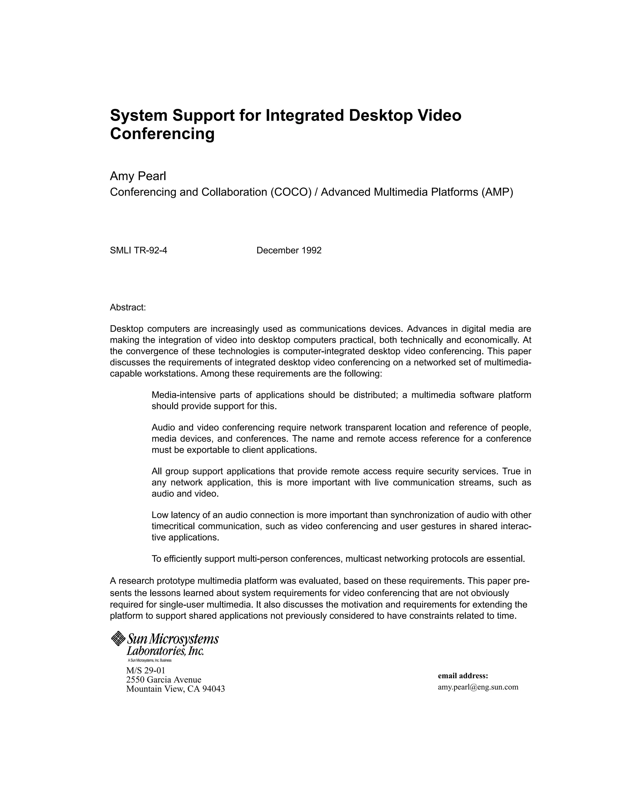 This document discusses the system requirements for integrated desktop video conferencing on networked workstations. It identifies key requirements such as:
