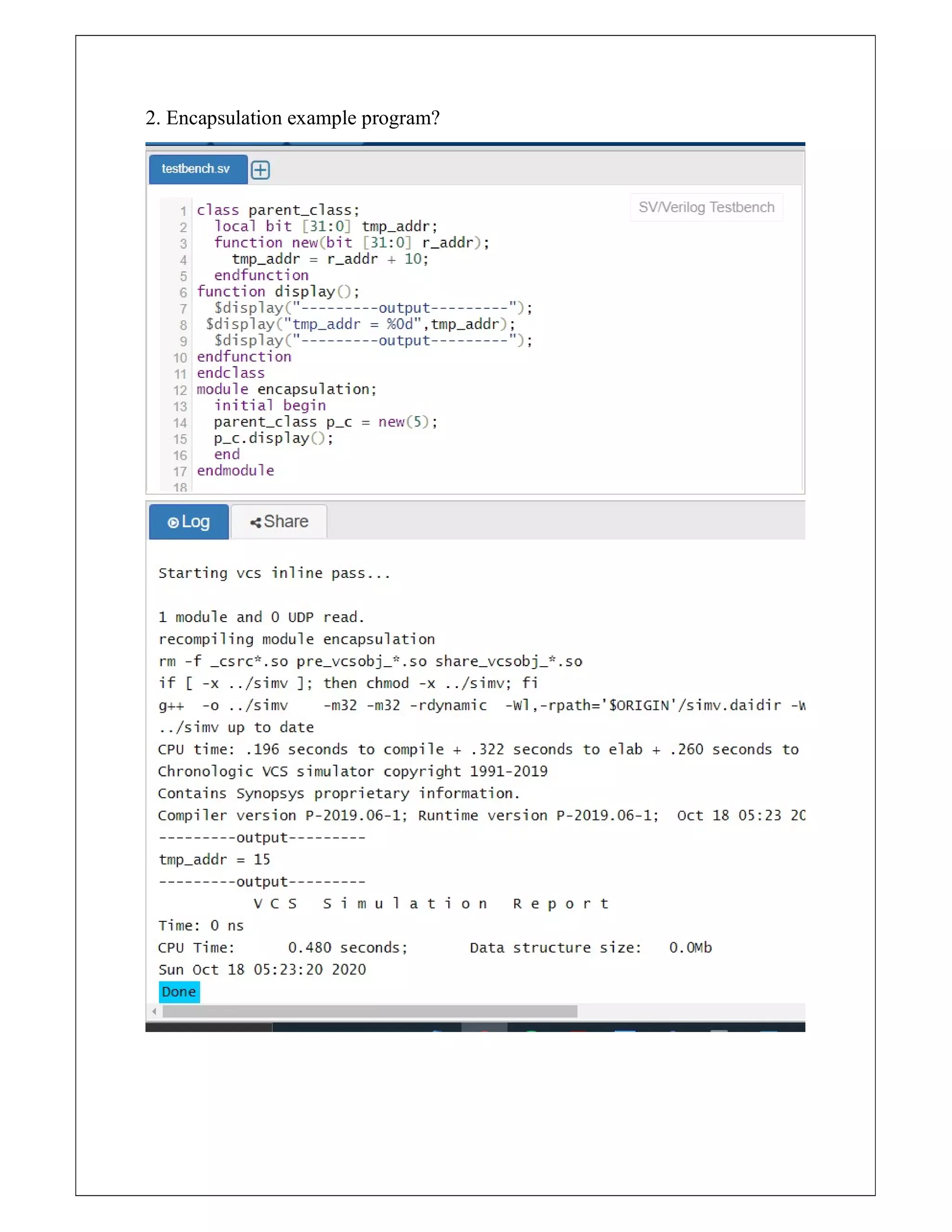 This document contains 3 questions asking for example programs demonstrating the scope resolution operator, encapsulation, and inheritance in C++.