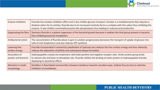 This document discusses and compares topical and systemic fluorides. It provides a history of fluoride use and research. Key points include: topical fluorides such as sodium fluoride, stannous fluoride, and acidulated phosphate fluoride have been used since the 1940s to reduce dental caries. Water, salt, and milk have been vehicles for systemic fluoride delivery. Topical fluorides provide a direct source of fluoride to the tooth surface while systemic fluorides incorporate fluoride into teeth and bone. Both methods have benefits and limitations.