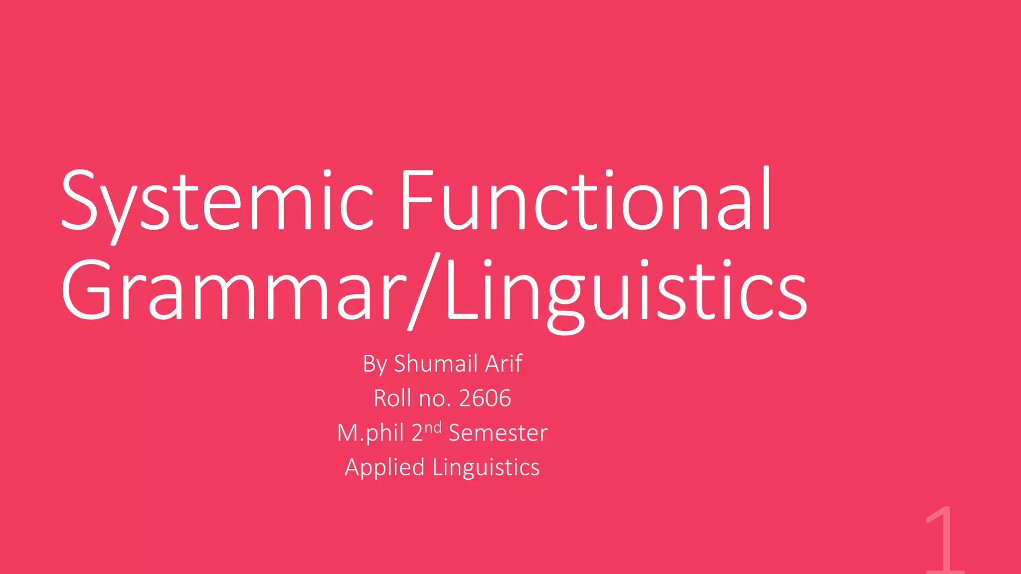 This document provides an overview of systemic functional grammar and linguistics. It discusses traditional grammar, formal grammar, and functional grammar. Functional grammar is concerned with both language structures and how those structures construct meaning. It analyzes clauses in terms of participants, processes, and circumstances rather than parts of speech. The document also discusses the connection between context and text, explaining how context of situation and culture influence language use and meaning. Context of situation includes factors like field, tenor, and mode. Finally, the document defines genre as culturally specific text types used to accomplish purposes, with distinctive stages and linguistic features.