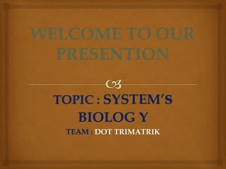 Systems biology is the computational and mathematical modeling of complex biological systems, gaining popularity since 2000 in various biological contexts including cells and proteins. It focuses on the interactions among components within biological systems and holds promise for drug discovery through the analysis of complex relationships involving multiple genes. The document discusses the advantages, challenges, and tools related to systems biology while emphasizing its role in understanding biological networks.