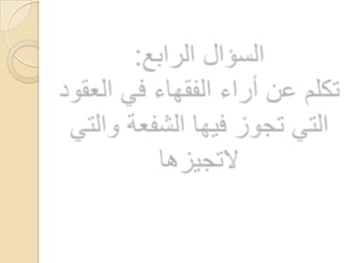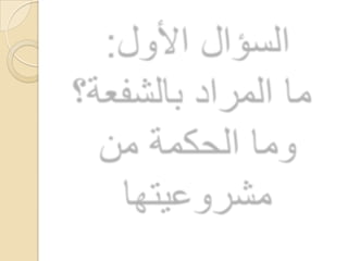 Dokumen tersebut membahas tentang hukum syuf'ah menurut ajaran Rasulullah SAW. Syuf'ah hanya berlaku untuk barang-barang yang tidak dapat dibagi, namun jika terjadi perselisihan hak kepemilikan maka syuf'ah tidak berlaku dan hak masing-masing harus jelas. Dokumen tersebut juga menjelaskan berbagai kasus penerapan hukum syuf'ah.
