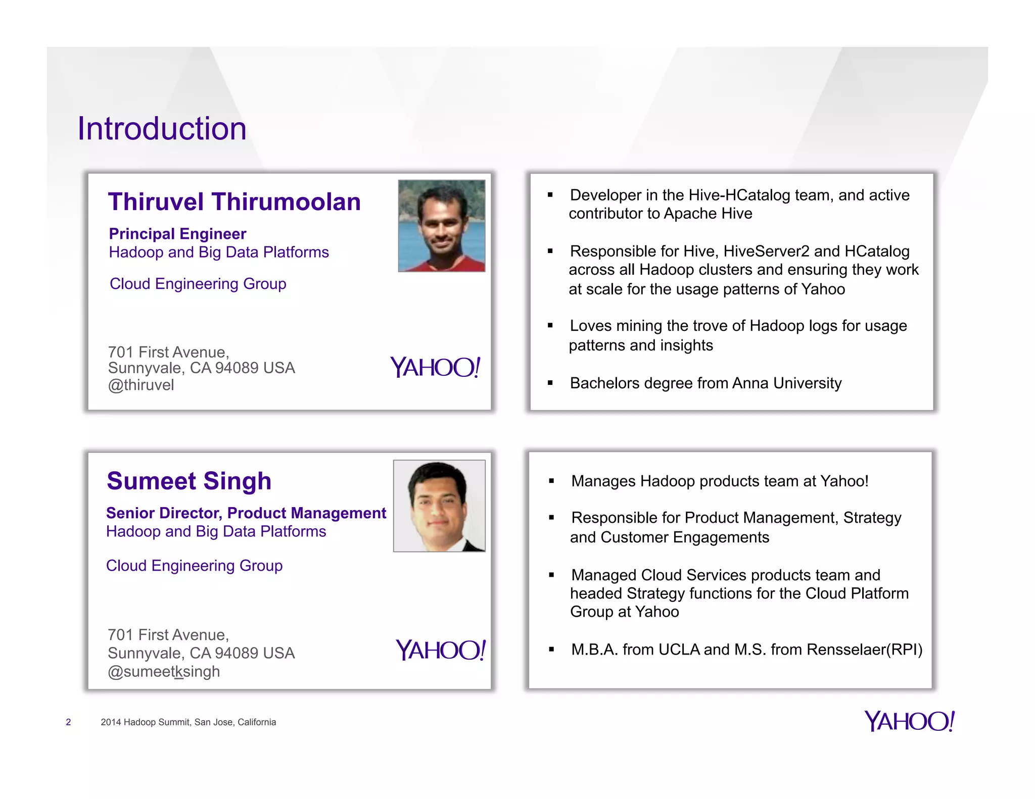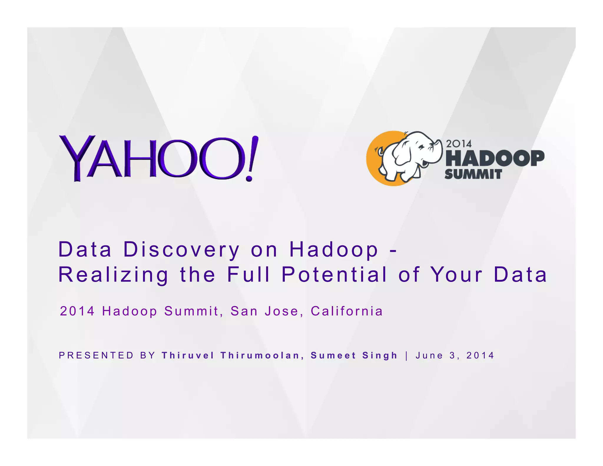 The document discusses the challenges and solutions for data management in Hadoop environments, focusing on the role of Apache HCatalog as a data discovery tool. It highlights the architecture of HCatalog, its integration with various data processing tools, and the features that facilitate data registration, discovery, and access. The presentation outlines how HCatalog helps manage metadata and supports multi-tenant platforms, ensuring efficient data usage across different applications.