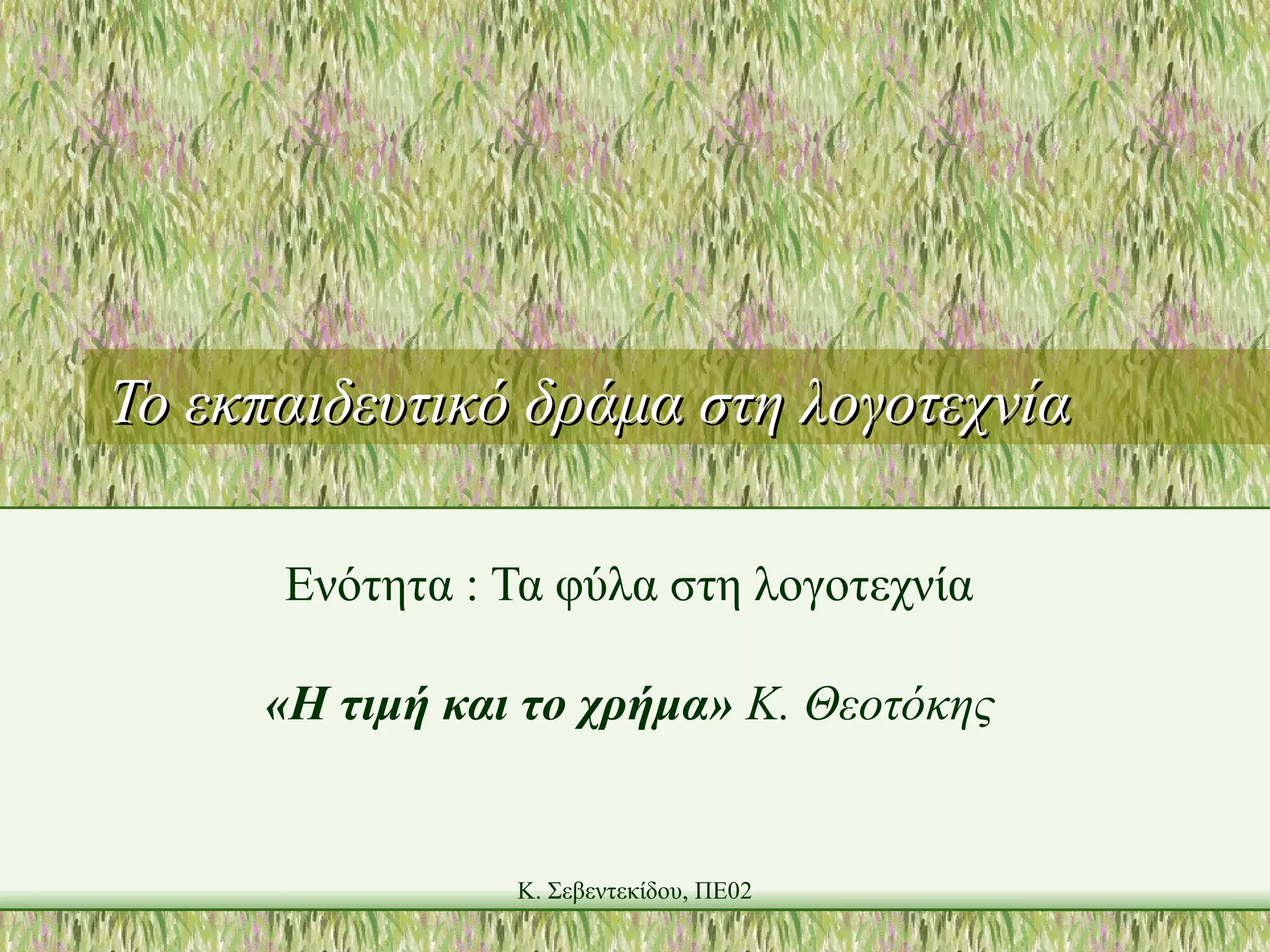 Τοεκπαιδευτικό δράμα στη λογοτεχνίαΤο εκπαιδευτικό δράμα στη λογοτεχνία