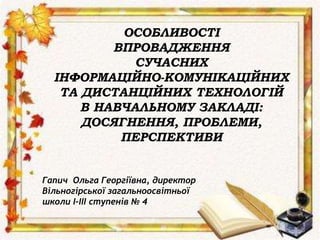 Упровадження технологій дистанційного навчання щодо організації роботи з обда...