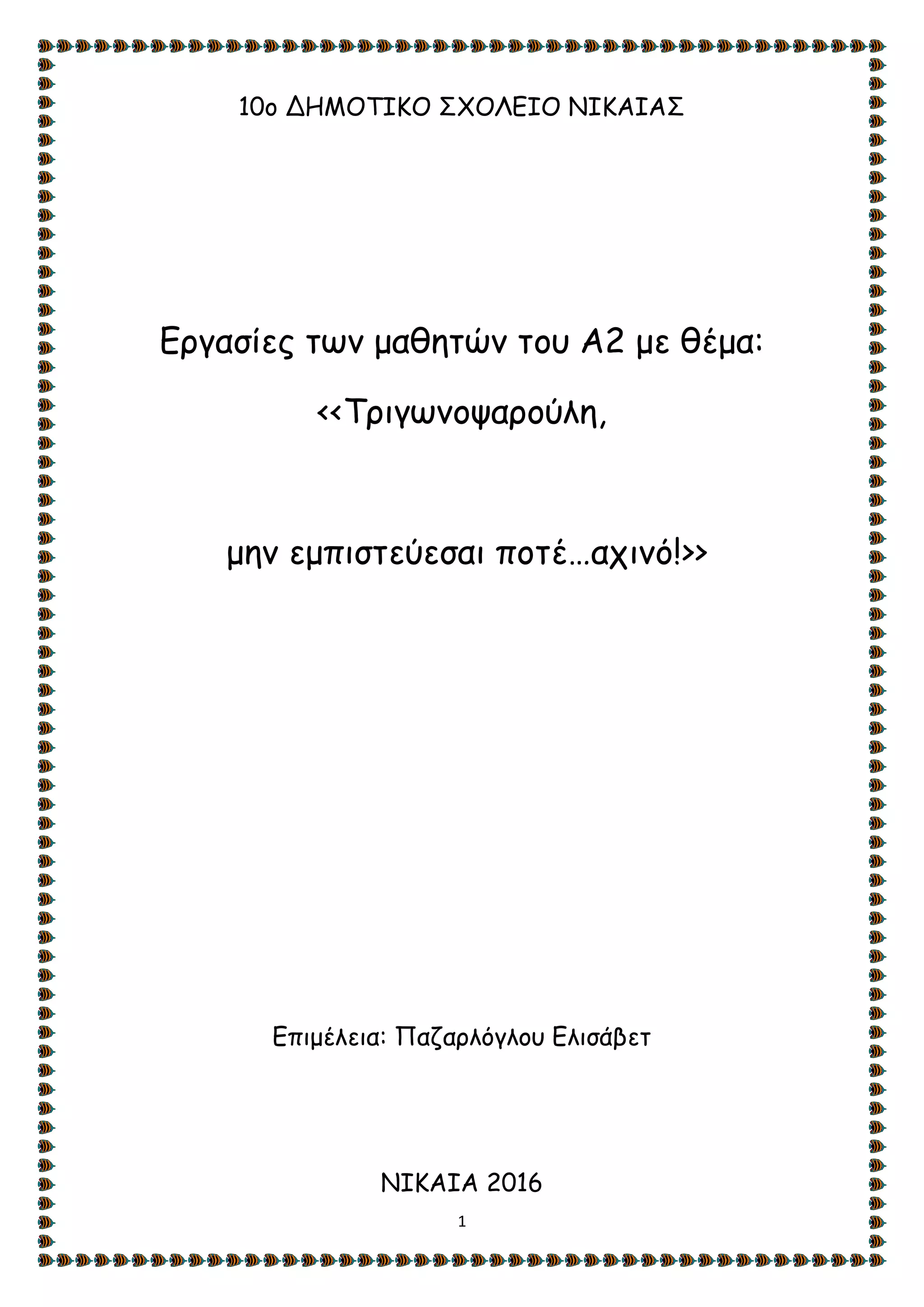 15. Μια φορά μες στο βυθό ήταν όλα τα ψάρια, μα ξεχώριζαν ο Τριγωνοψαρούλης για το