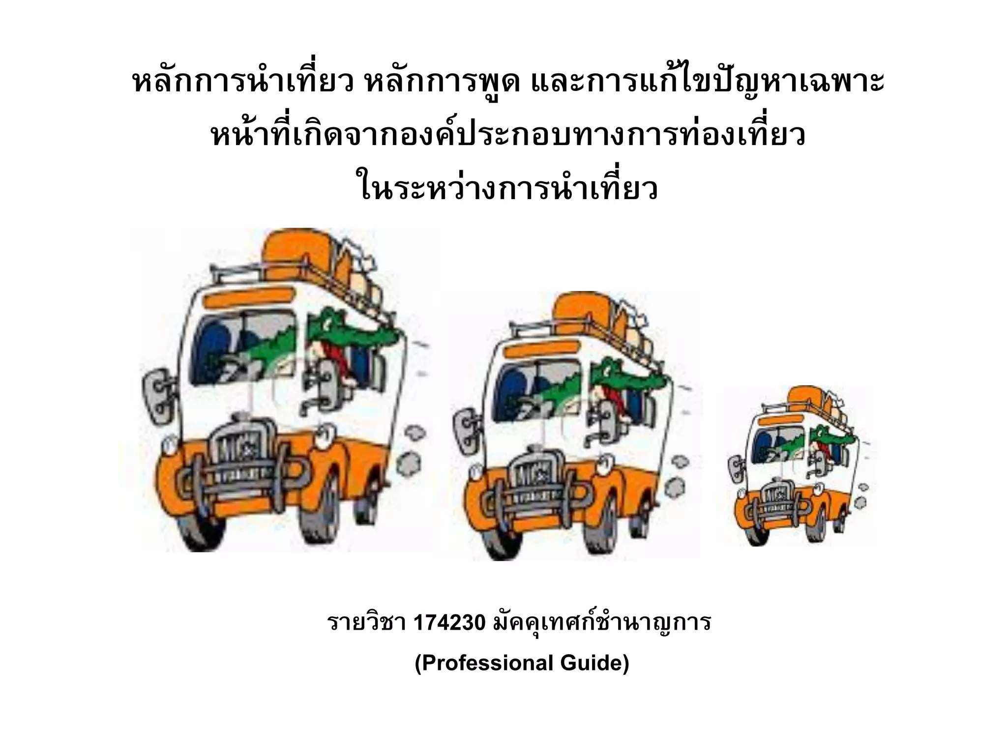 •ชี้แจงรายการนาเที่ยว 39. 4. การปฏิบัติหน้าที่ในระหว่างการเดินทาง
