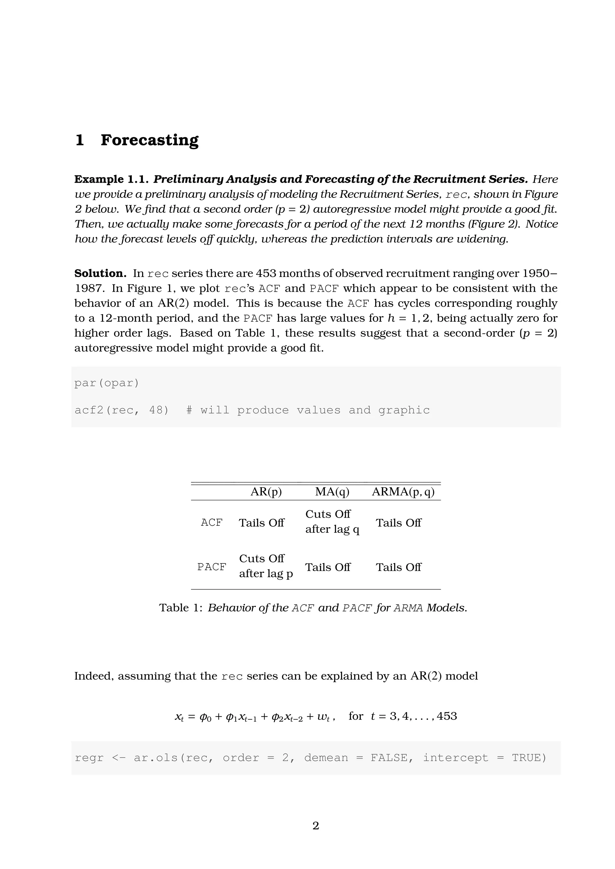 This document discusses ARIMA (autoregressive integrated moving average) models for time series forecasting. It covers the basic steps for identifying and fitting ARIMA models, including plotting the data, identifying possible AR or MA components using the autocorrelation function (ACF) and partial autocorrelation function (PACF), estimating model parameters, checking the residuals to validate the model fit, and choosing the best model. An example analyzes quarterly US GNP data to demonstrate these steps.