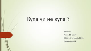 купу. Потрібно дослідити параметри, які впливають на