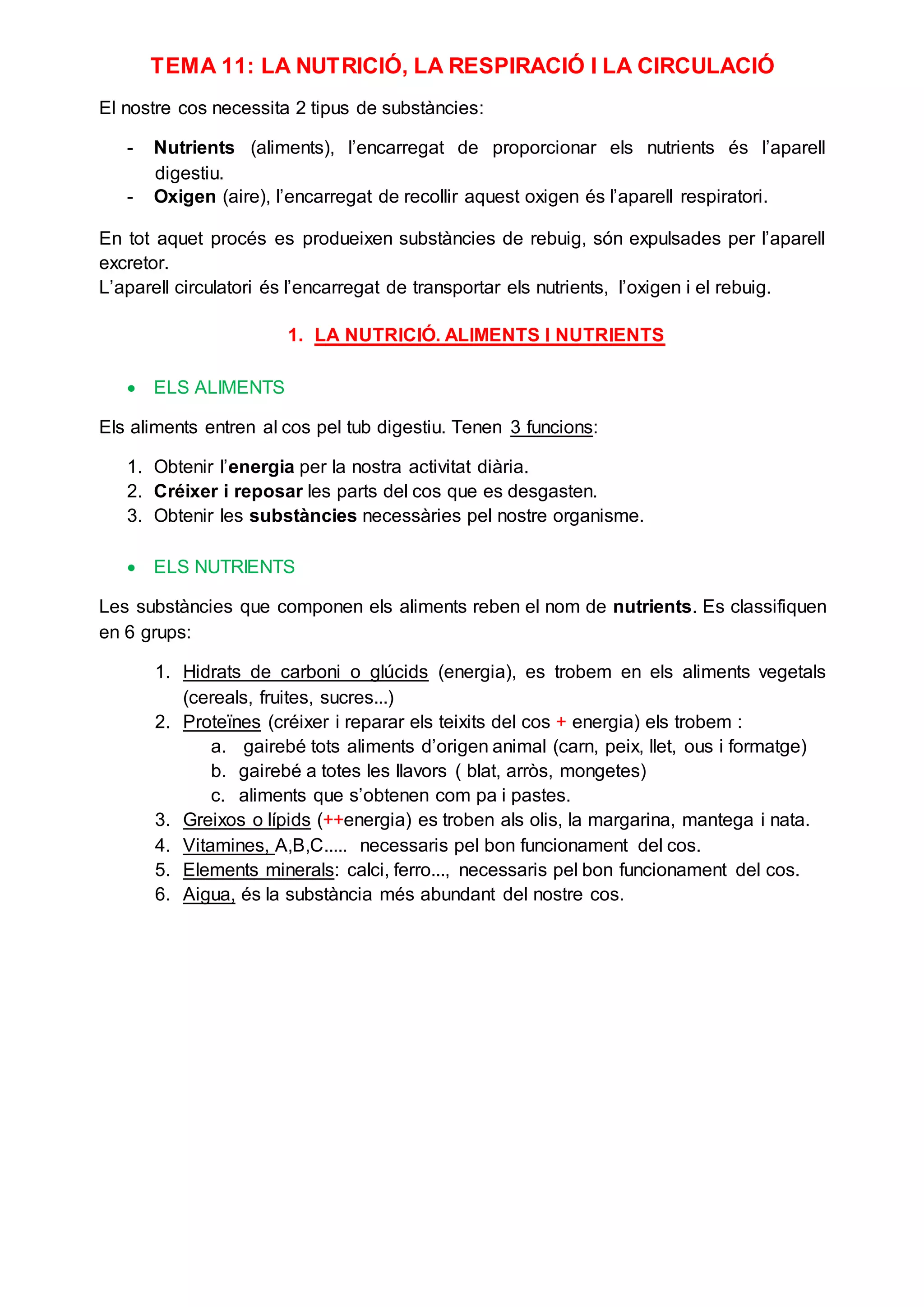 TEMA 11: LANUTRICIÓ, LA RESPIRACIÓ I LA CIRCULACIÓ