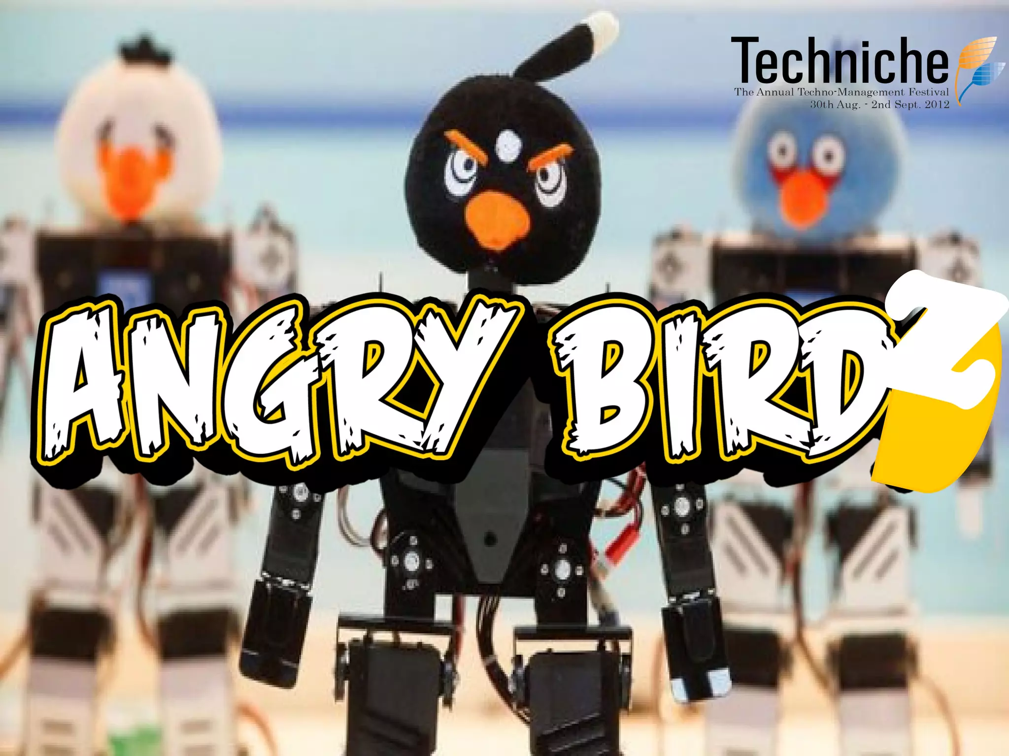 This document outlines the structure and rules for a robotics competition with three stages: prelims, knockout, and showdown. In the prelims, robots must shoot balls through rings of different diameters within a time limit to score points. In the knockout, robots must knock blocks and pigs off a structure within a time limit by shooting balls to advance to the showdown. The showdown challenges robots to remove all pigs from a structure while saving eggs within a time limit for the highest ranking. Robots are subject to size, power, weight and operation restrictions and teams may have up to four members.
