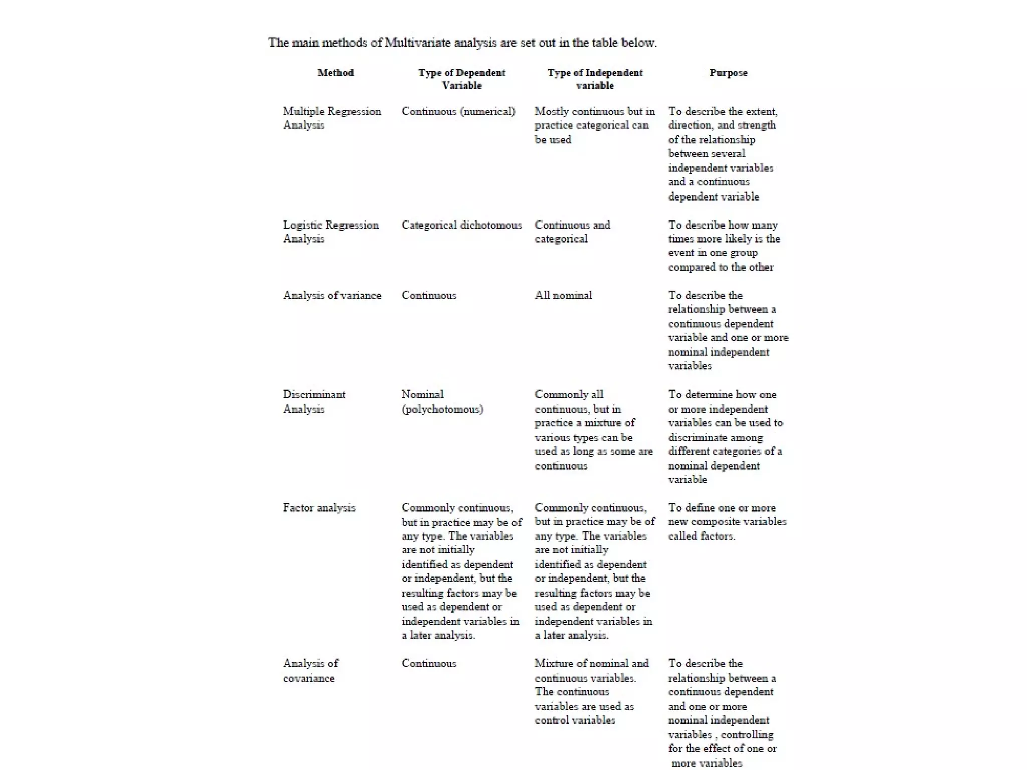 This document discusses Simpson's paradox and the importance of multivariate analysis. It provides examples where initial bivariate analyses produced misleading results by not accounting for additional variables. Multivariate analysis methods can help identify confounding variables and provide a better understanding of relationships between multiple variables. These methods include techniques for dependence, like multiple regression, and interdependence, like cluster analysis and factor analysis, which extend common univariate analyses like correlation, regression, and ANOVA to multiple variables.