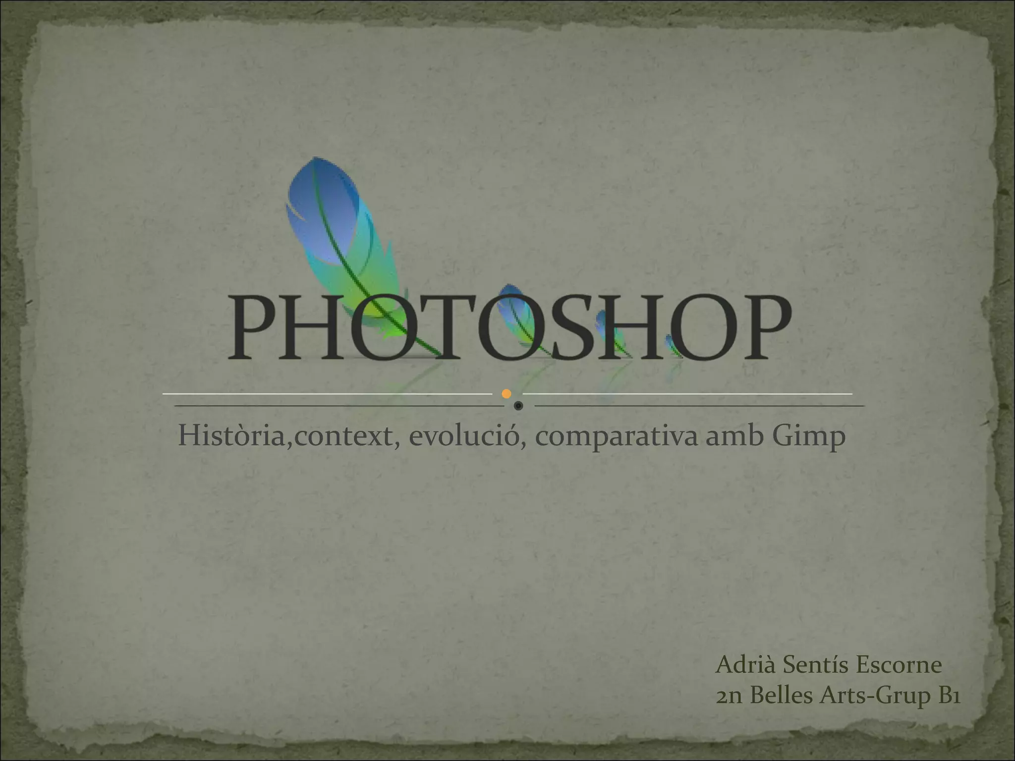 Adobe Photoshop, que va ser creat al 1990 per Thomas Knoll, és el nom o marca comercial oficial que rep un dels programes més populars de la casa Adobe, juntament amb els seus programes germans Adobe Illustrator i Adobe Flash , i que es tracta esencialment d’una aplicació informàtica en forma de taller de pintura i fotografia que treballa sobre una “ tela” i que esta destinat a l’edició, retoc fotogràfic i pintura a base d’imatges de mapes de bits. El seu nom en català significa “taller de fotos”. La seva capacitat de retocar i modificar fotografies l’ha fet un dels programes d’edició d’imatges més famosos del món.