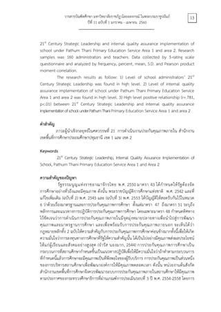 ภาวะผู้นาเชิงกลยุทธ์ในศตวรรษที่ 21 กับการดาเนินงานประกันคุณภาพภายในสถานศึกษา